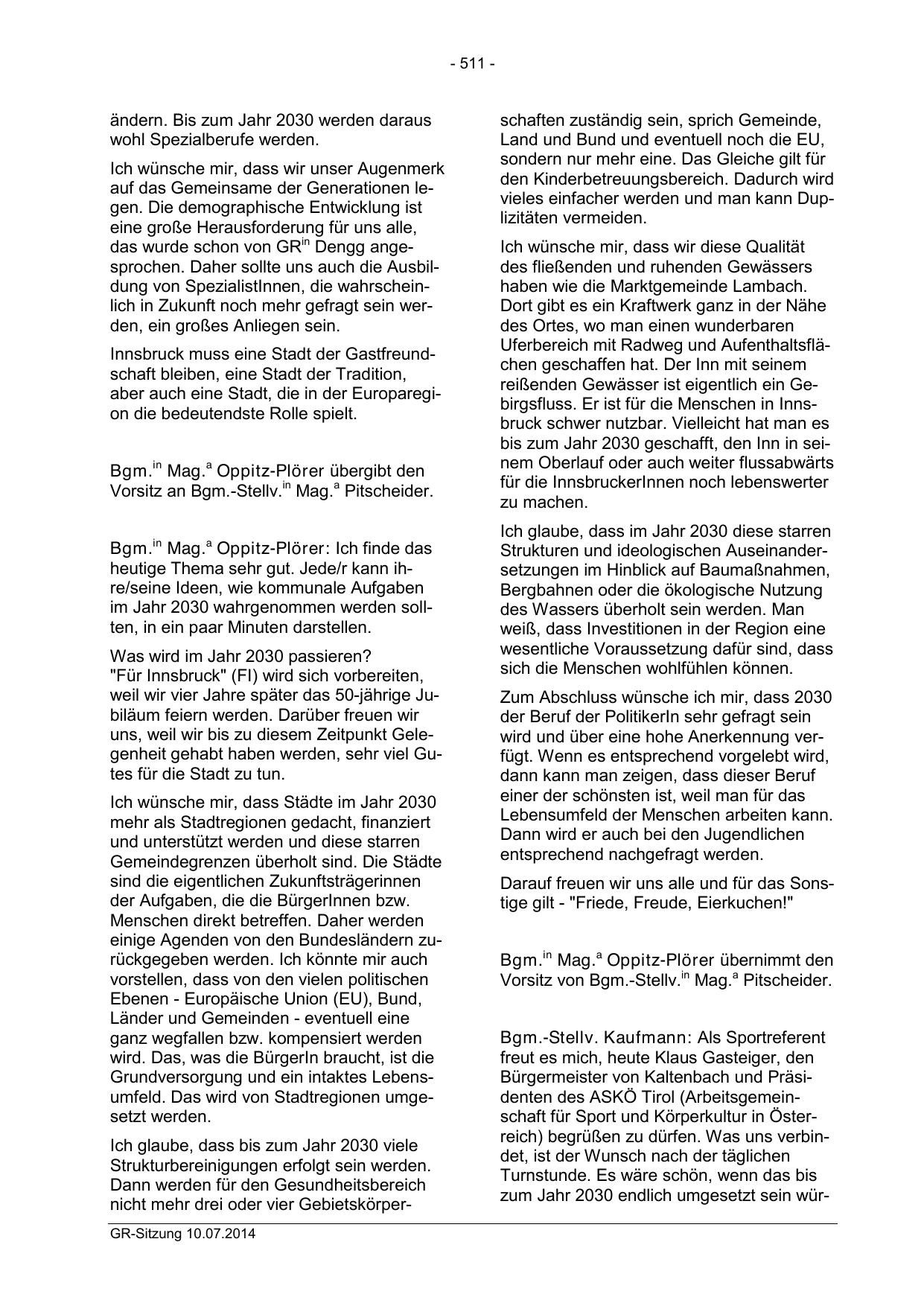 Vorsitz an Bgm.-Stellv.in Mag.a Pitscheider.