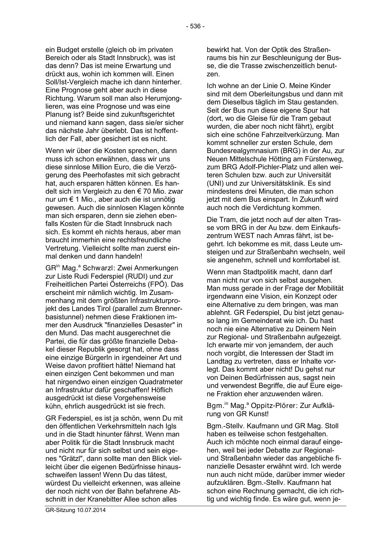 ablehnt. GR Federspiel, Du bist jetzt genauso lang im Gemeinderat wie ich. Du hast