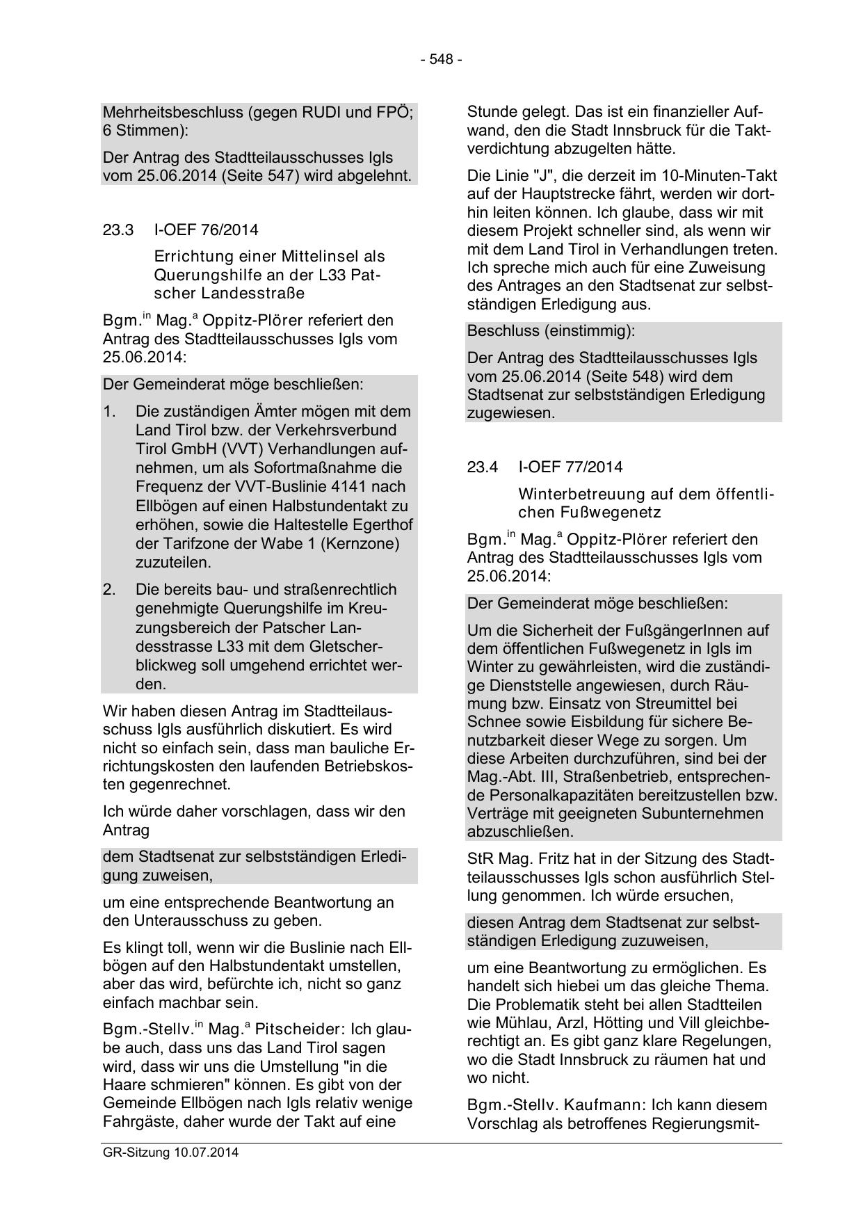 StR Mag. Fritz hat in der Sitzung des Stadtteilausschusses Igls schon ausführlich Stellung genommen. Ich würde ersuchen,