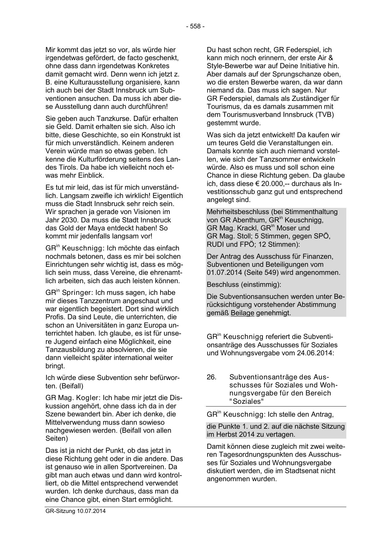 Die Subventionsansuchen werden unter Berücksichtigung vorstehender Abstimmung