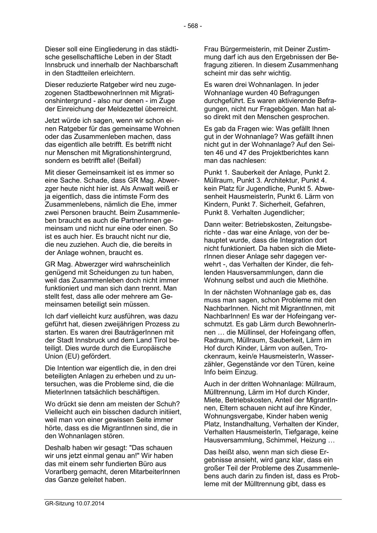 eine Sache. Schade, dass GR Mag. Abwerzger heute nicht hier ist. Als Anwalt weiß er