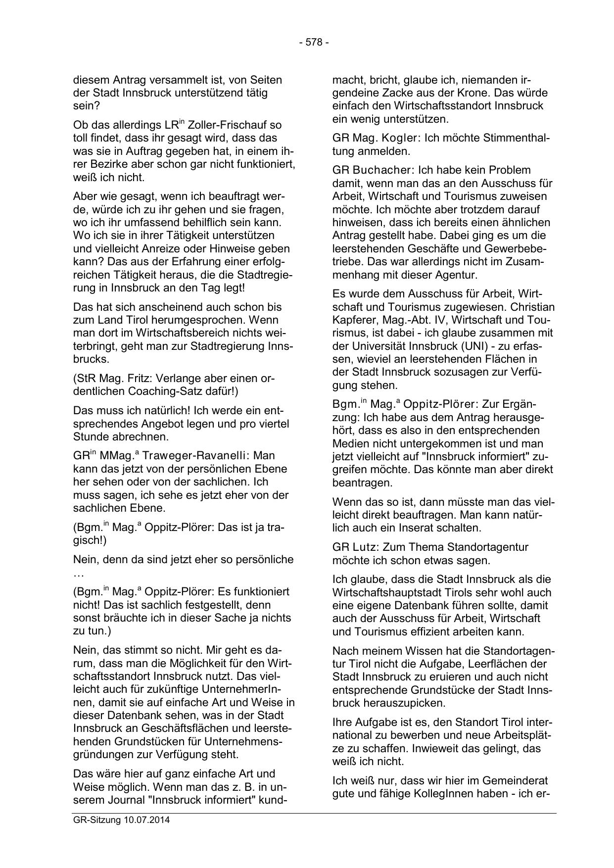 Weise möglich. Wenn man das z. B. in unserem Journal "Innsbruck informiert" kundGR-Sitzung 10.07.2014