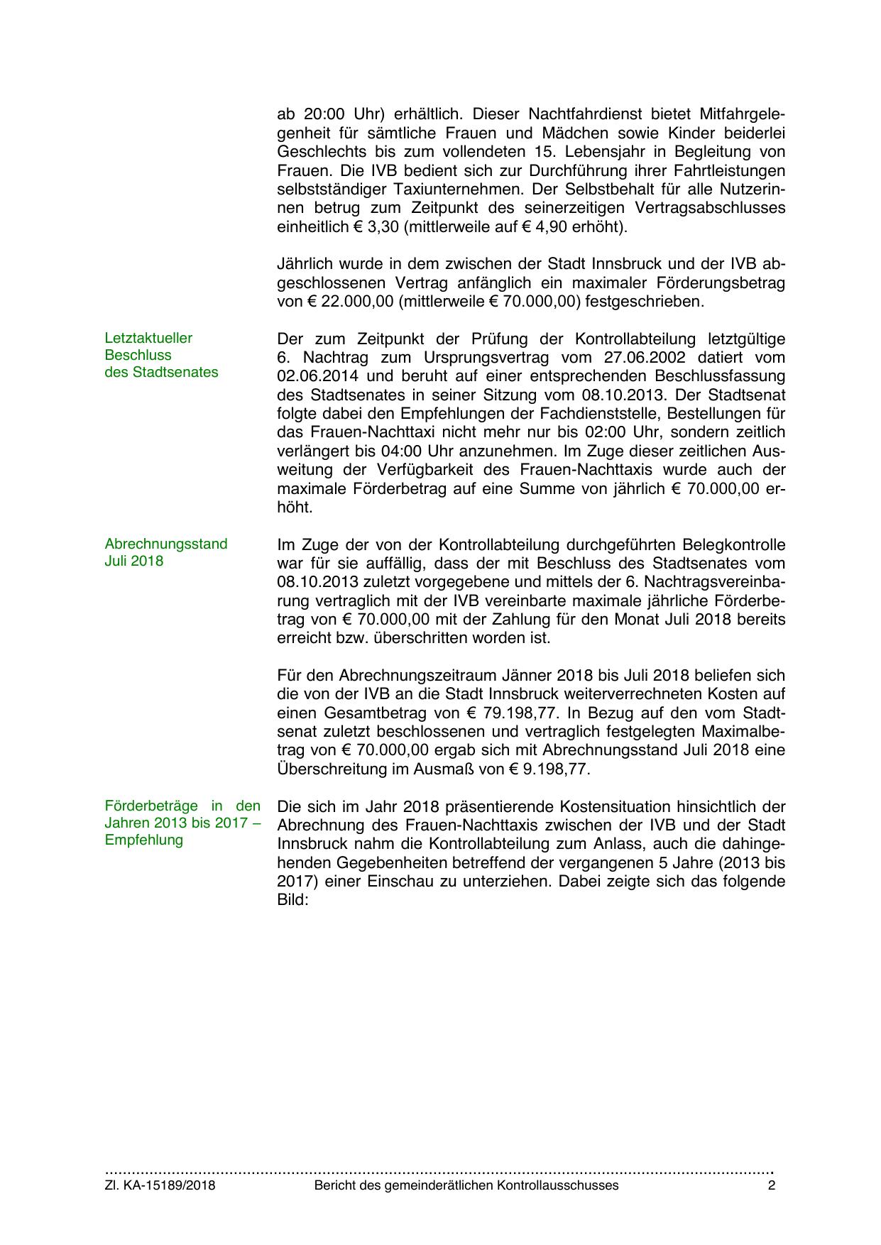 Innsbruck nahm die Kontrollabteilung zum Anlass, auch die dahingehenden Gegebenheiten betreffend der vergangenen 5 Jahre (2013 bis