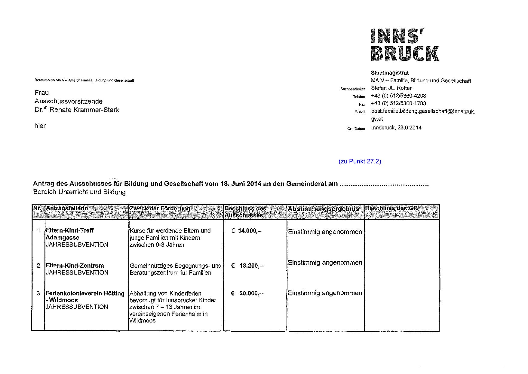 Retouren an MA V - Amt fOr Familie, 8ildung und Gesellschaft