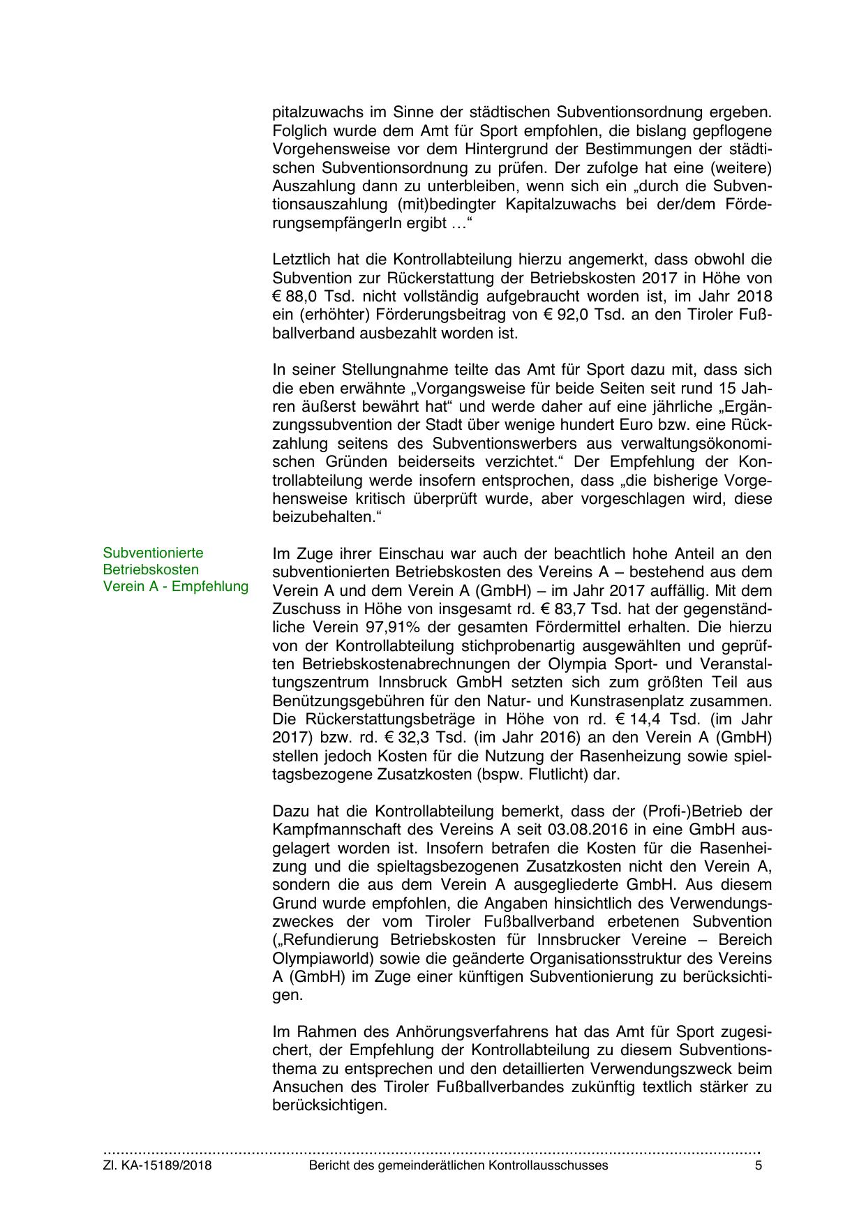 („Refundierung Betriebskosten für Innsbrucker Vereine – Bereich