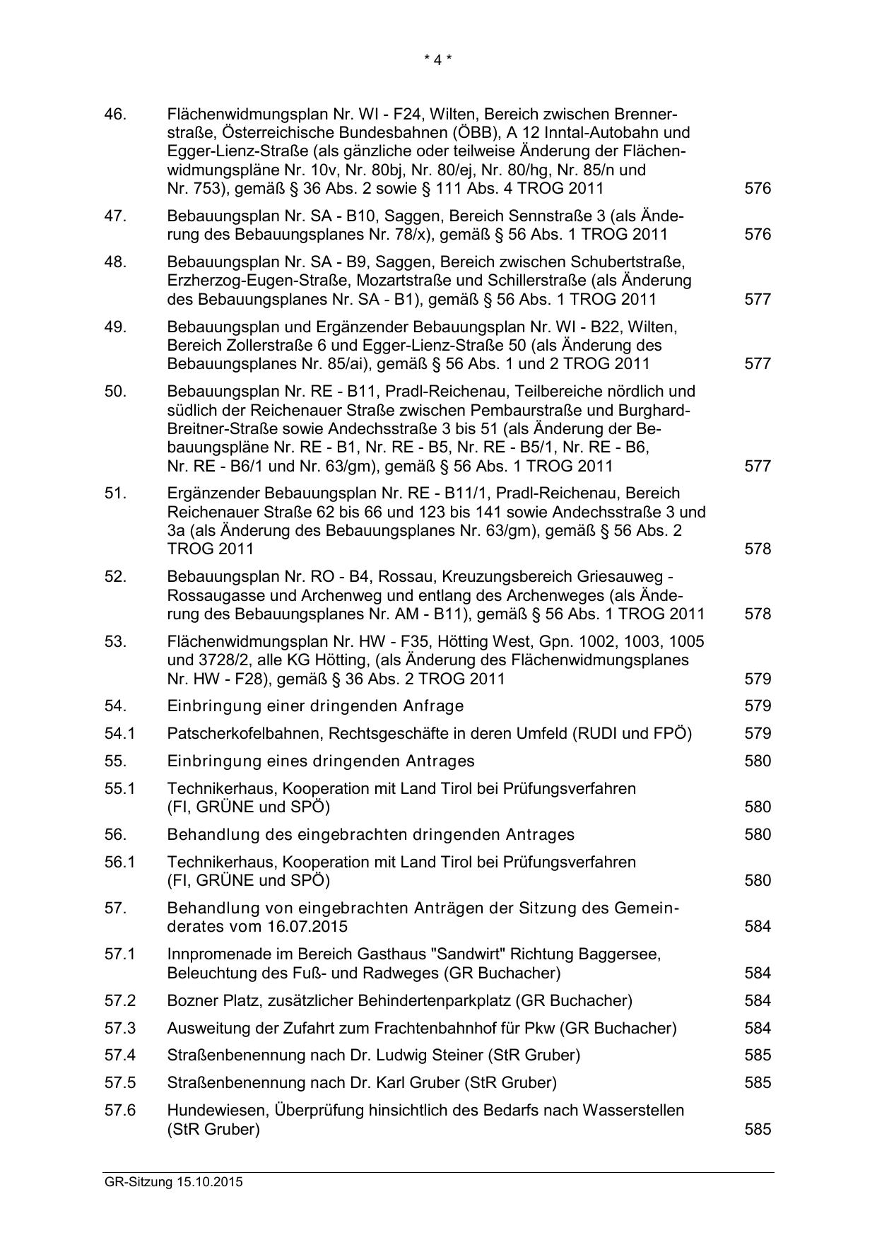 Bebauungsplanes Nr. 85/ai), gemäß § 56 Abs. 1 und 2 TROG 2011