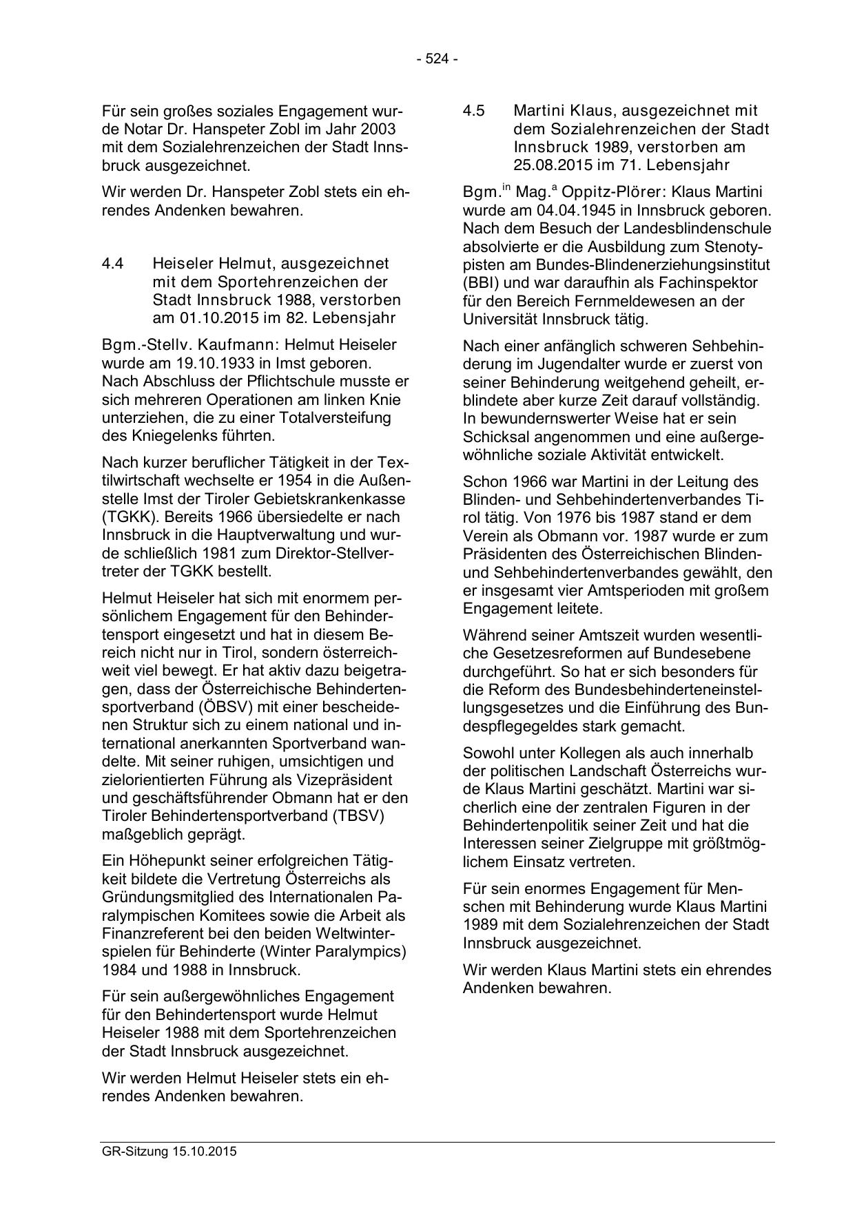 mit dem Sozialehrenzeichen der Stadt Innsbruck ausgezeichnet.