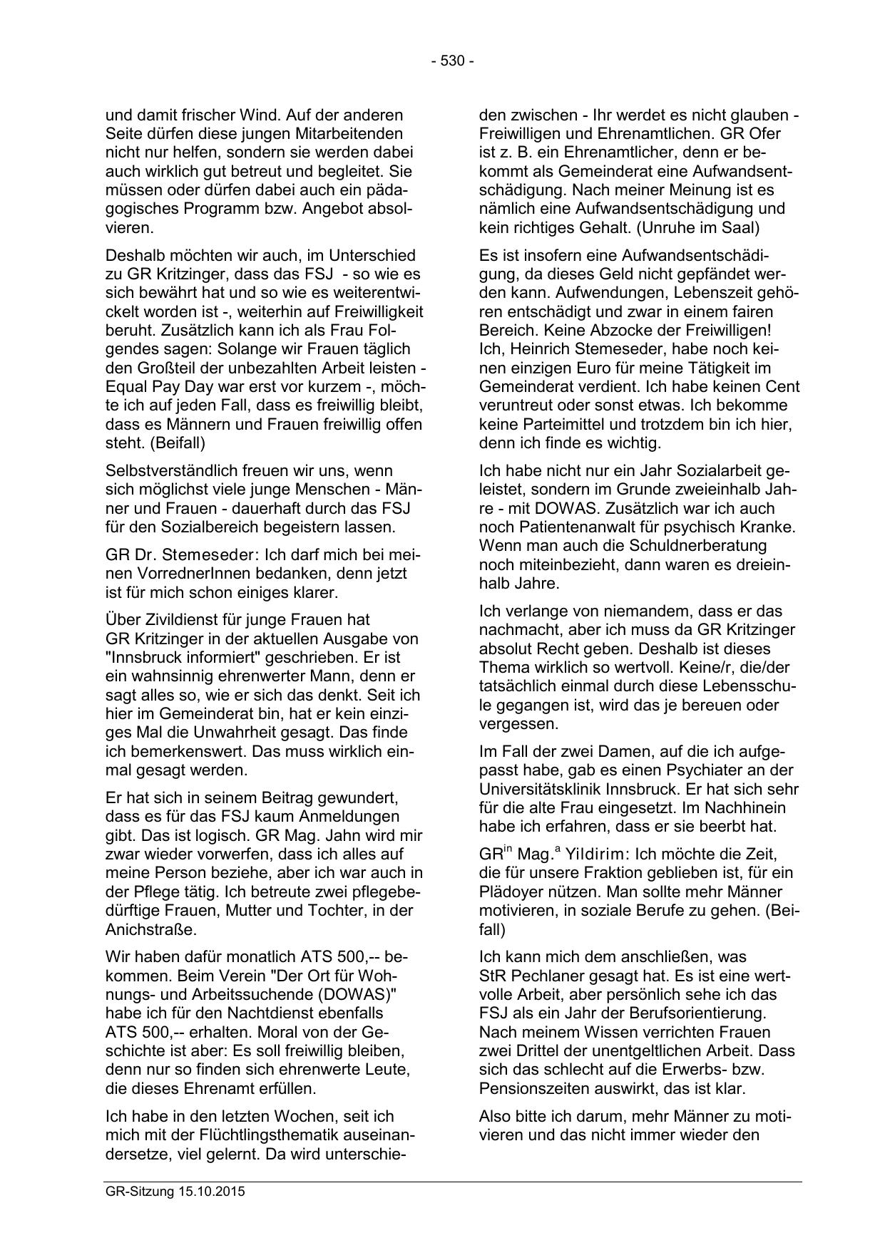 GR Dr. Stemeseder: Ich darf mich bei meinen VorrednerInnen bedanken, denn jetzt