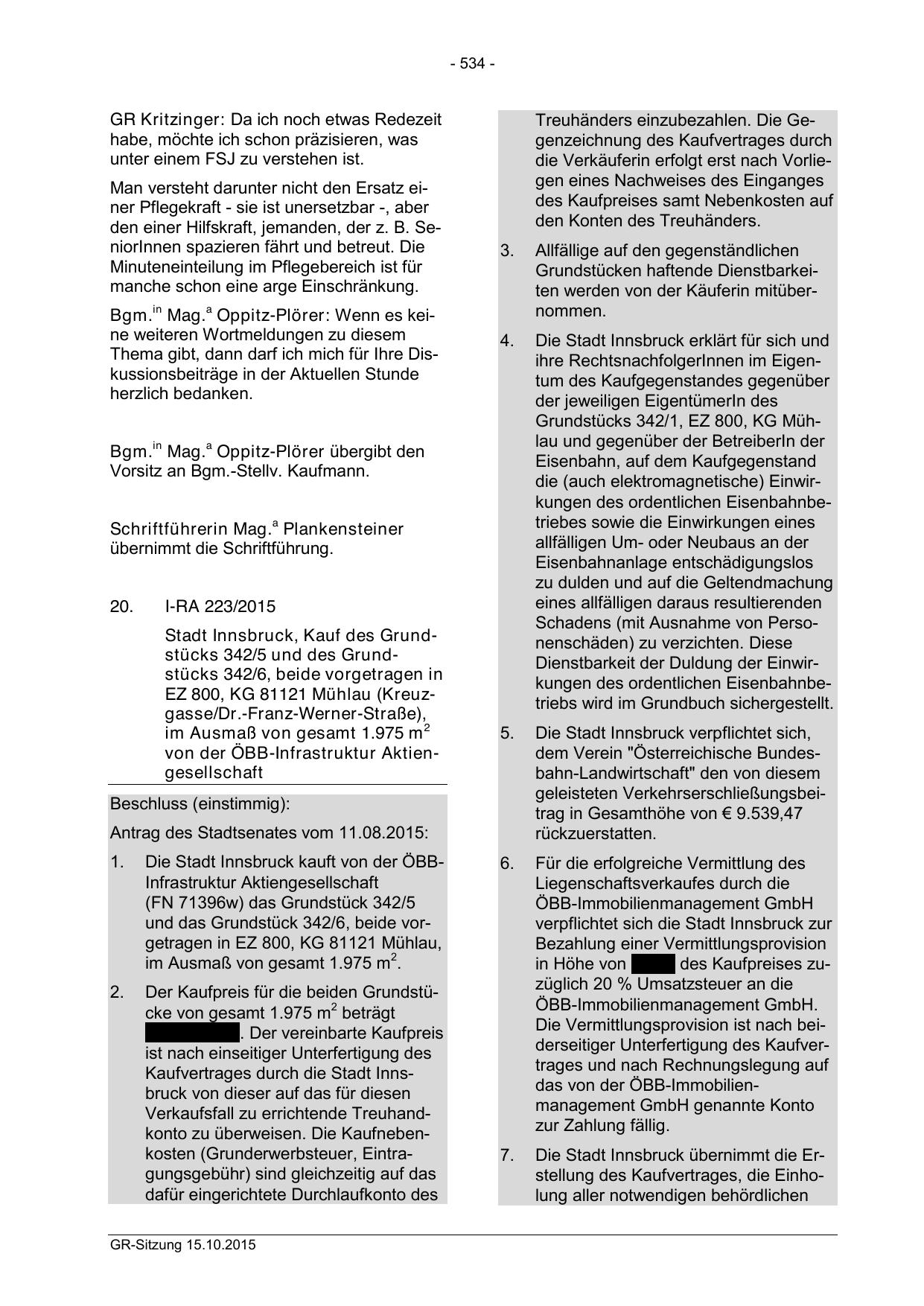 Die Stadt Innsbruck kauft von der ÖBBInfrastruktur Aktiengesellschaft
