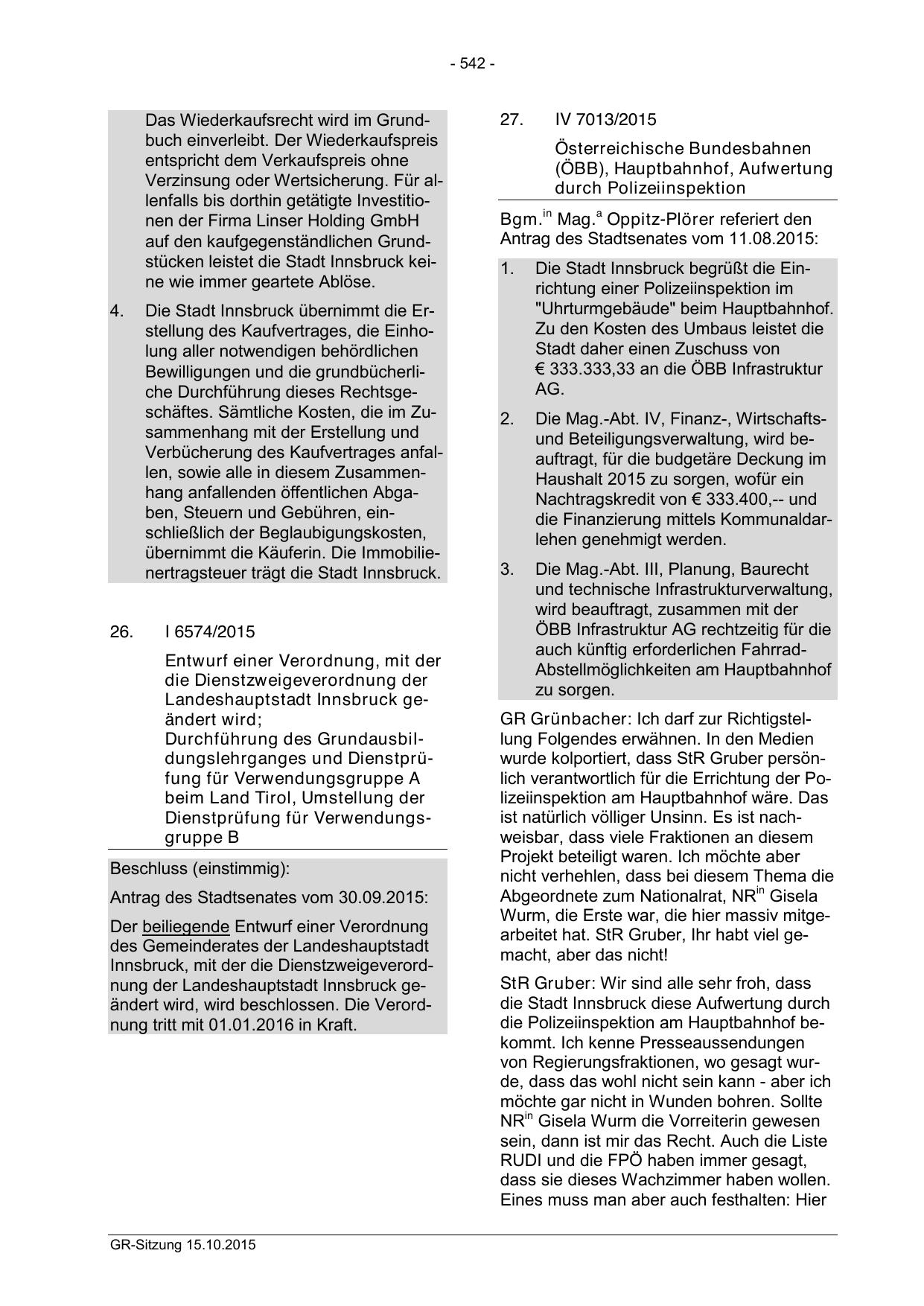Wurm, die Erste war, die hier massiv mitgearbeitet hat. StR Gruber, Ihr habt viel gemacht, aber das nicht!