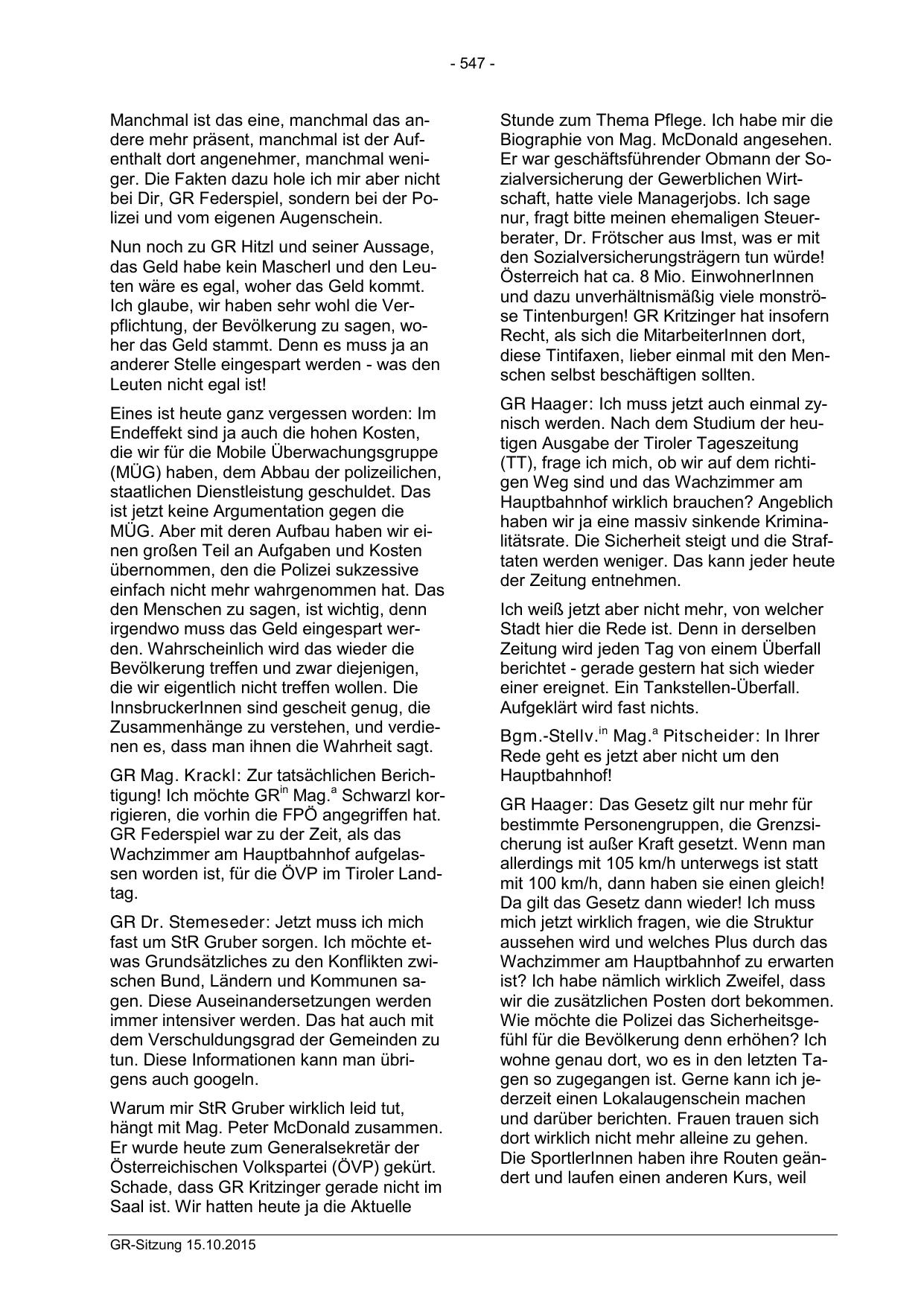 GR Haager: Ich muss jetzt auch einmal zynisch werden. Nach dem Studium der heutigen Ausgabe der Tiroler Tageszeitung