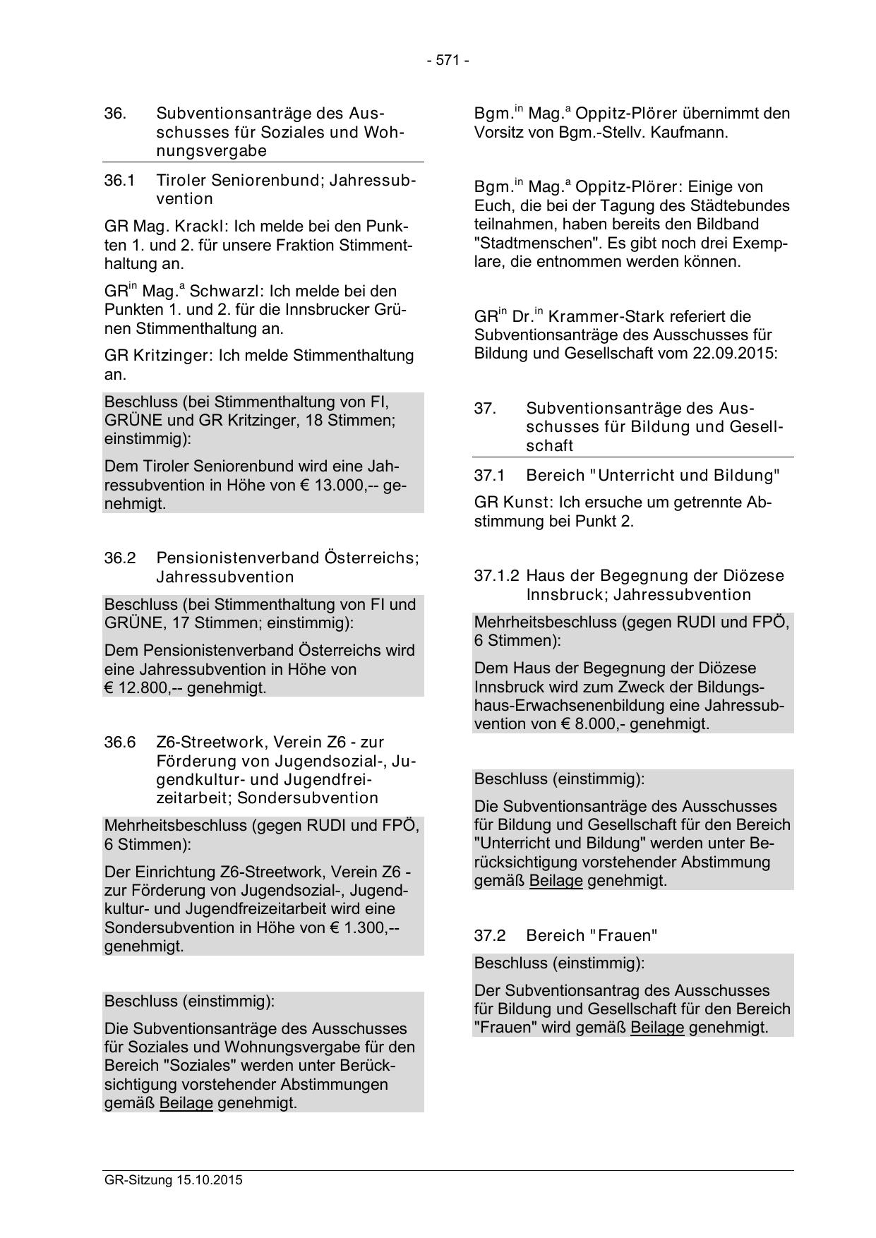 GRÜNE, 17 Stimmen; einstimmig):