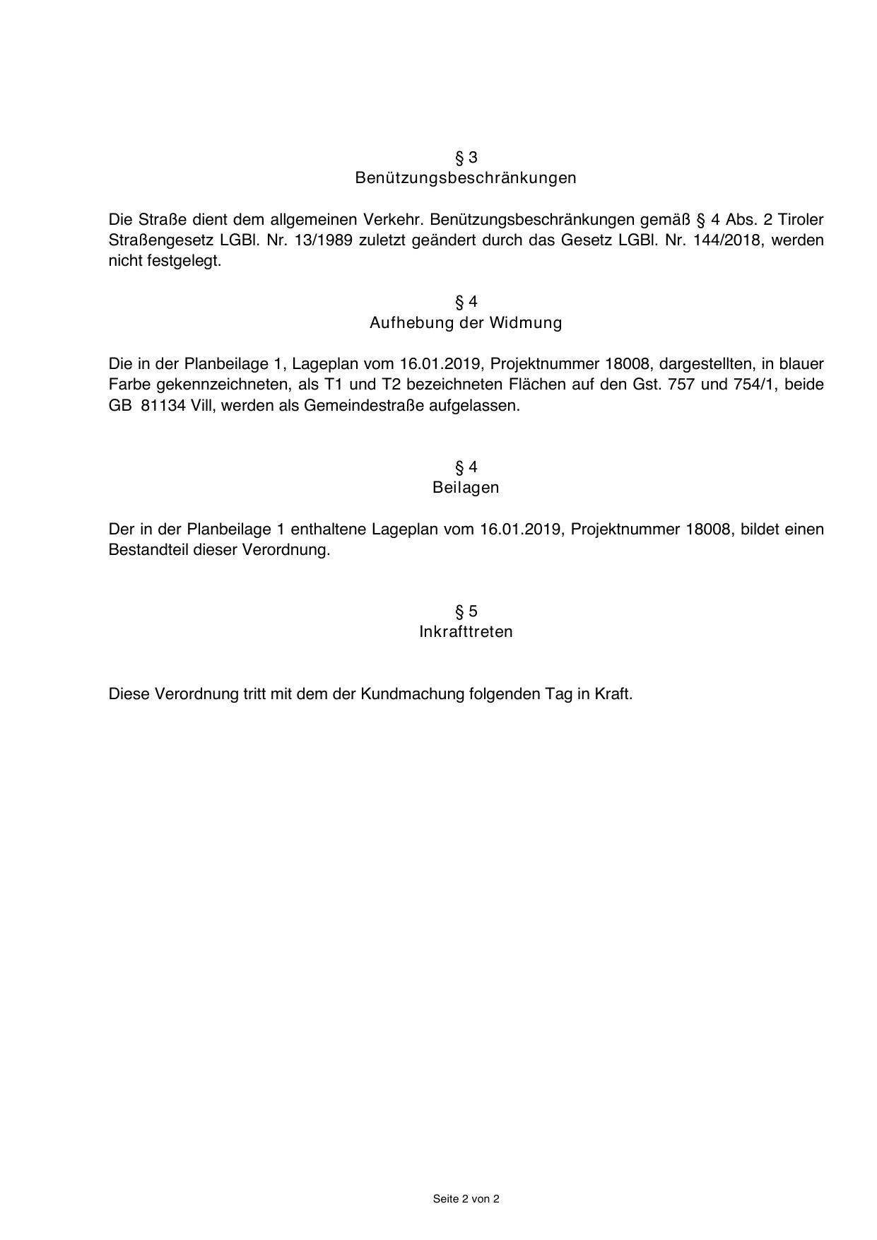 GB 81134 Vill, werden als Gemeindestraße aufgelassen.