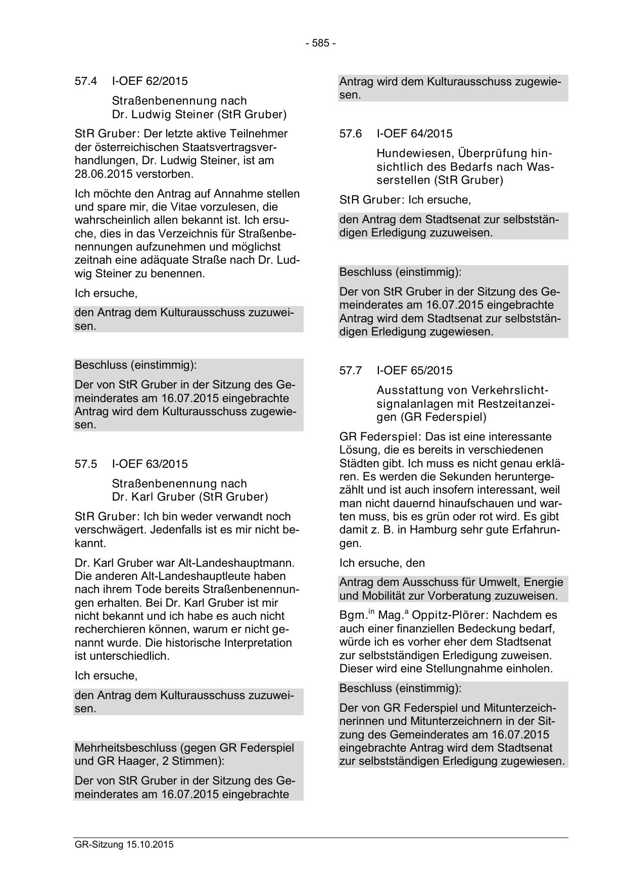 Der von StR Gruber in der Sitzung des Gemeinderates am 16.07.2015 eingebrachte