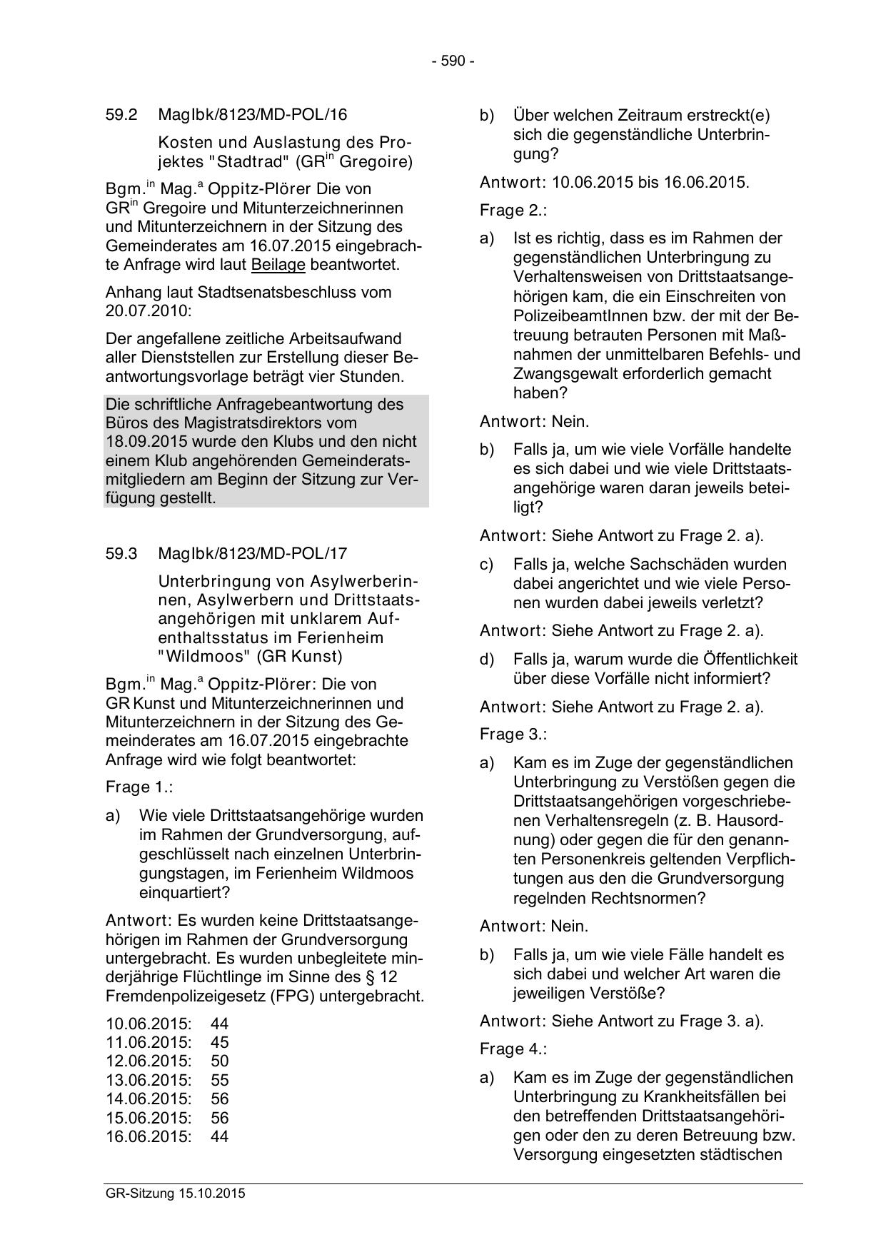Gemeinderates am 16.07.2015 eingebrachte Anfrage wird laut Beilage beantwortet.