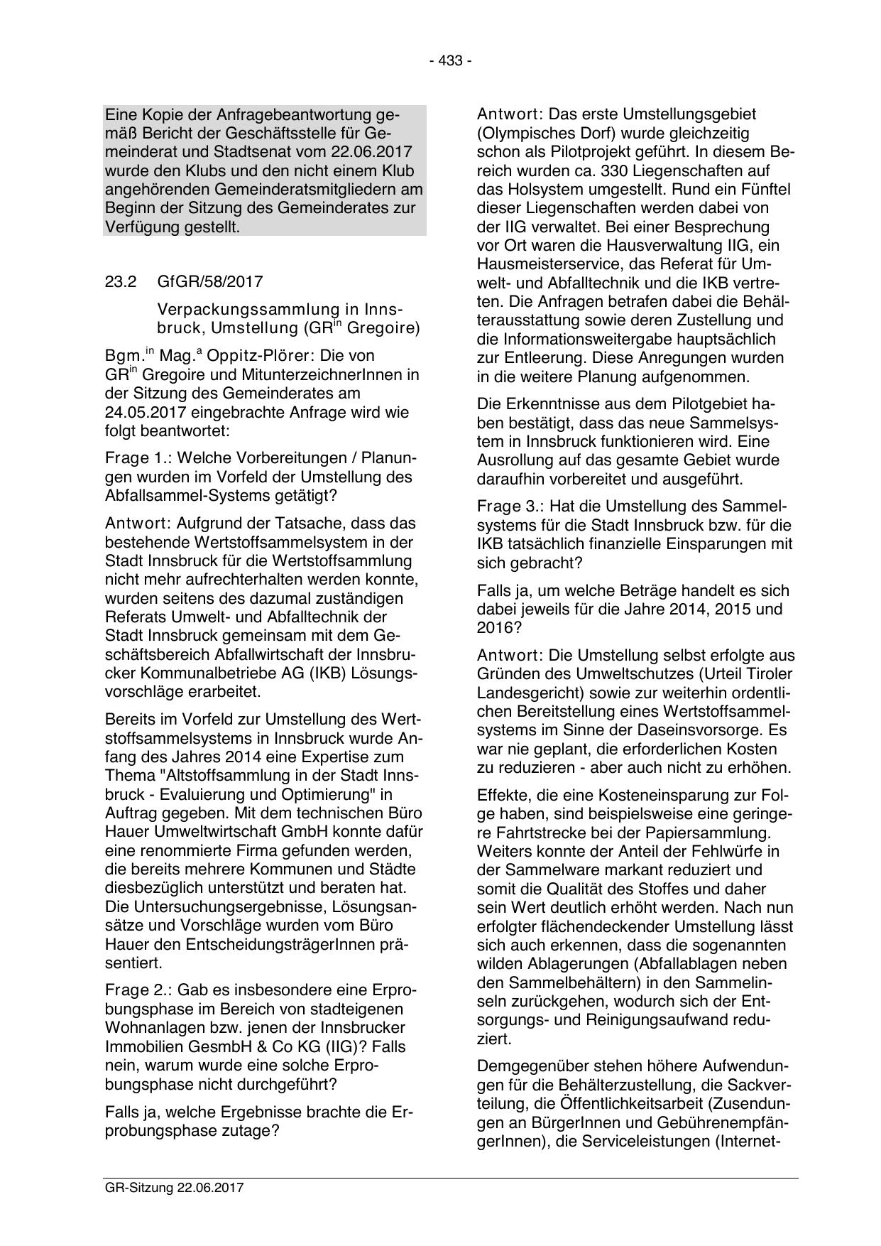 Verpackungssammlung in Innsbruck, Umstellung (GRin Gregoire)