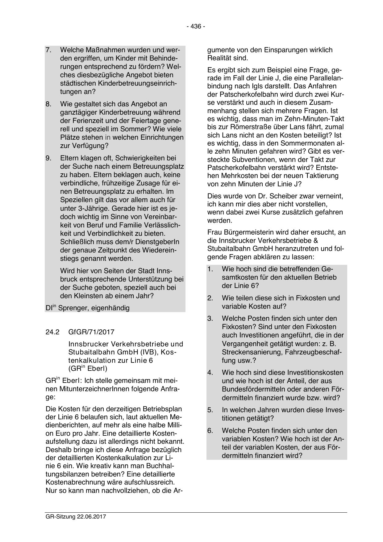 GRin Eberl: Ich stelle gemeinsam mit meinen MitunterzeichnerInnen folgende Anfrage: