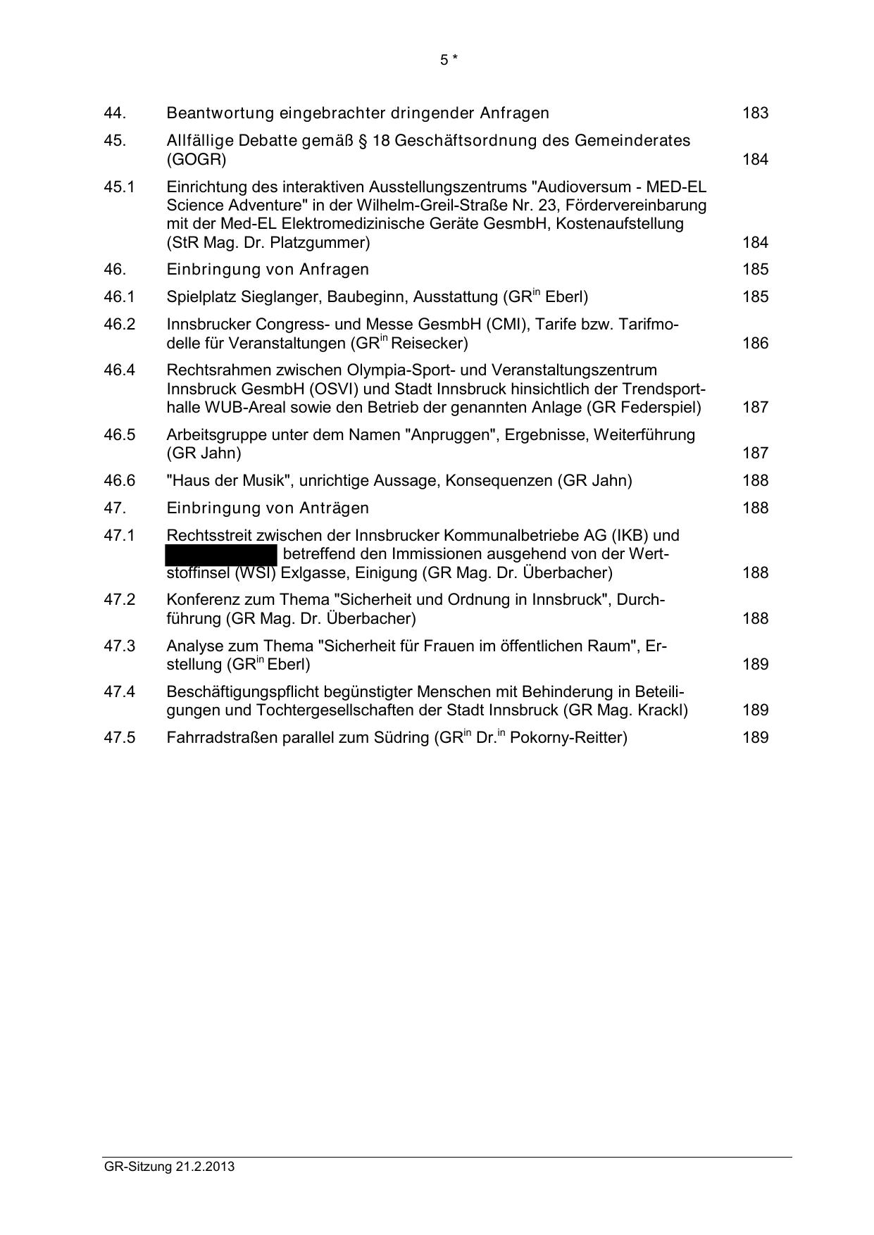 Innsbruck GesmbH (OSVI) und Stadt Innsbruck hinsichtlich der Trendsporthalle WUB-Areal sowie den Betrieb der genannten Anlage (GR Federspiel)