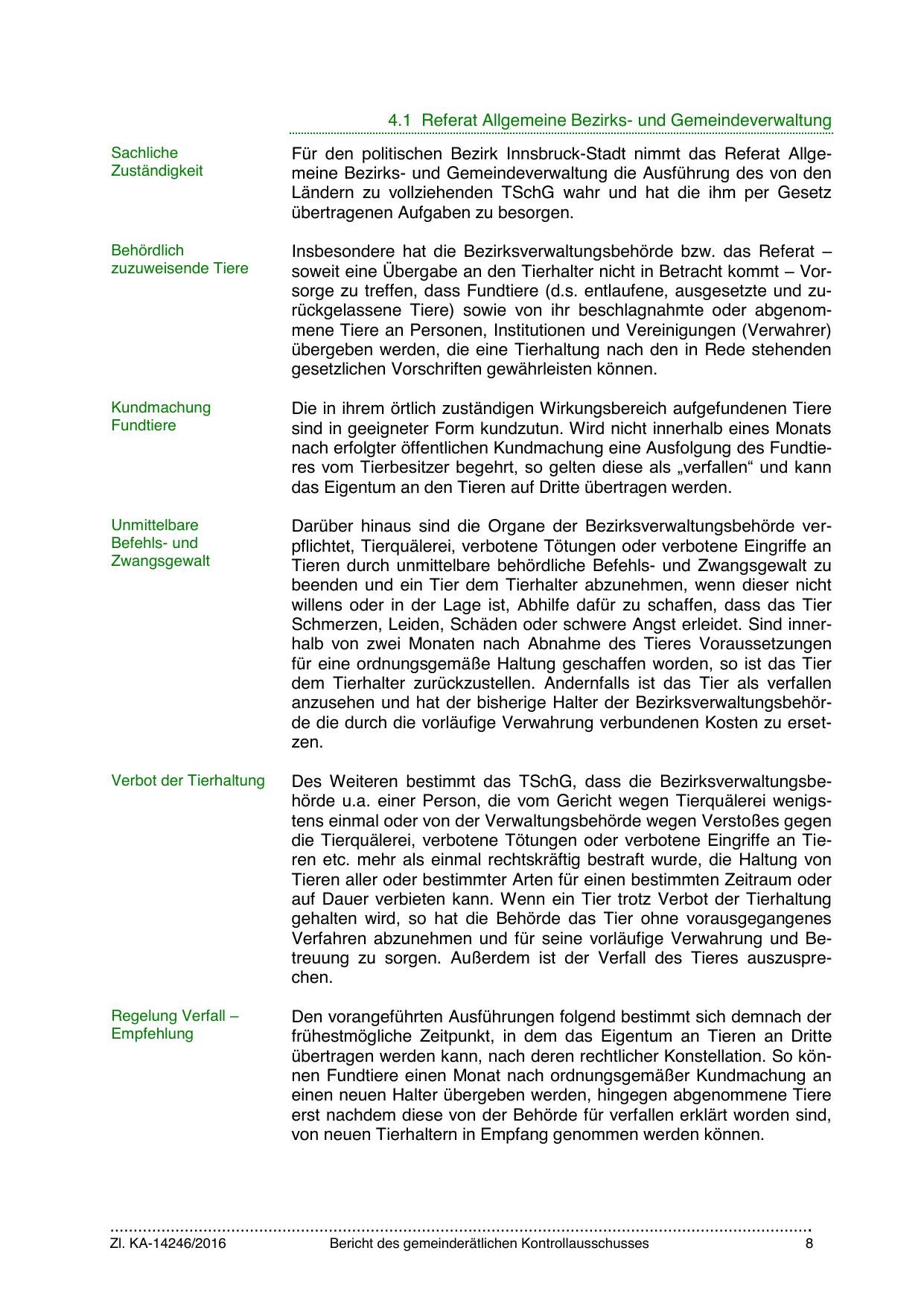 Für den politischen Bezirk Innsbruck-Stadt nimmt das Referat Allgemeine Bezirks- und Gemeindeverwaltung die Ausführung des von den