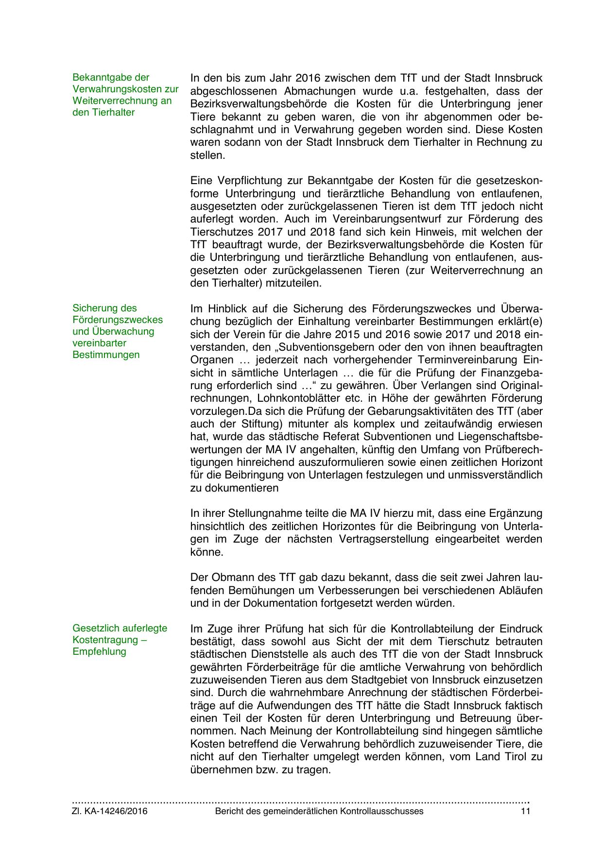 sind. Durch die wahrnehmbare Anrechnung der städtischen Förderbeiträge auf die Aufwendungen des TfT hätte die Stadt Innsbruck faktisch