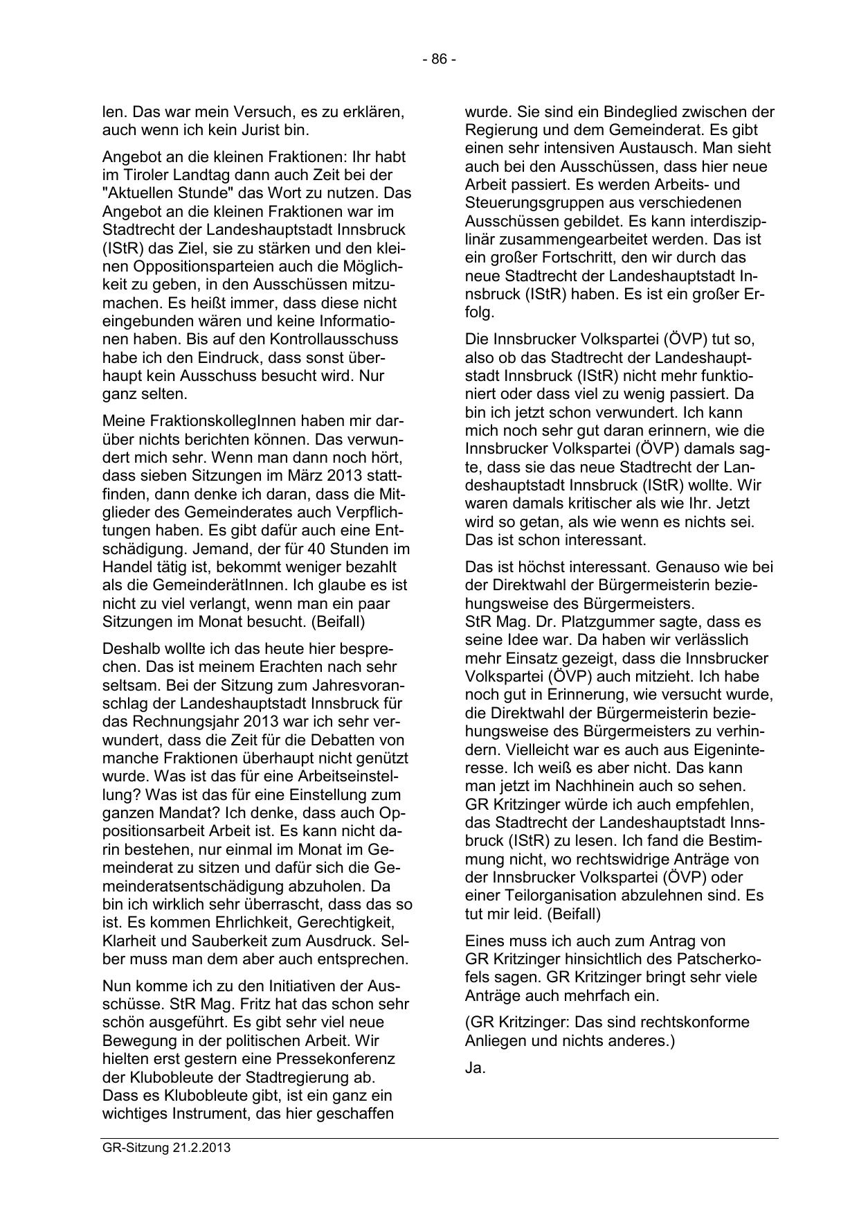 also ob das Stadtrecht der Landeshauptstadt Innsbruck (IStR) nicht mehr funktioniert oder dass viel zu wenig passiert. Da