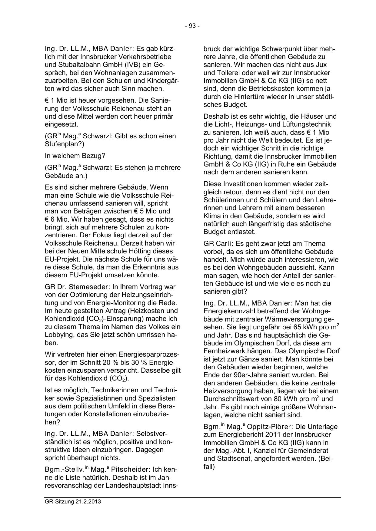 Bgm.-Stellv.in Mag.a Pitscheider: Ich kenne die Liste natürlich. Deshalb ist im Jahresvoranschlag der Landeshauptstadt InnsGR-Sitzung 21.2.2013