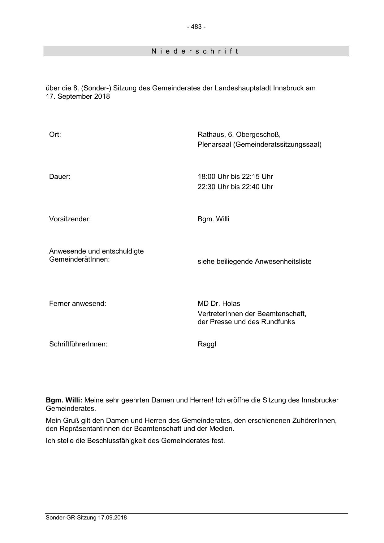 Bgm. Willi: Meine sehr geehrten Damen und Herren! Ich eröffne die Sitzung des Innsbrucker