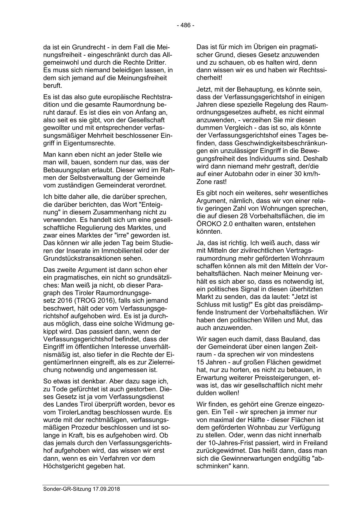 ein pragmatisches, ein nicht so grundsätzliches: Man weiß ja nicht, ob dieser Paragraph des Tiroler Raumordnungsgesetz 2016 (TROG 2016), falls sich jemand