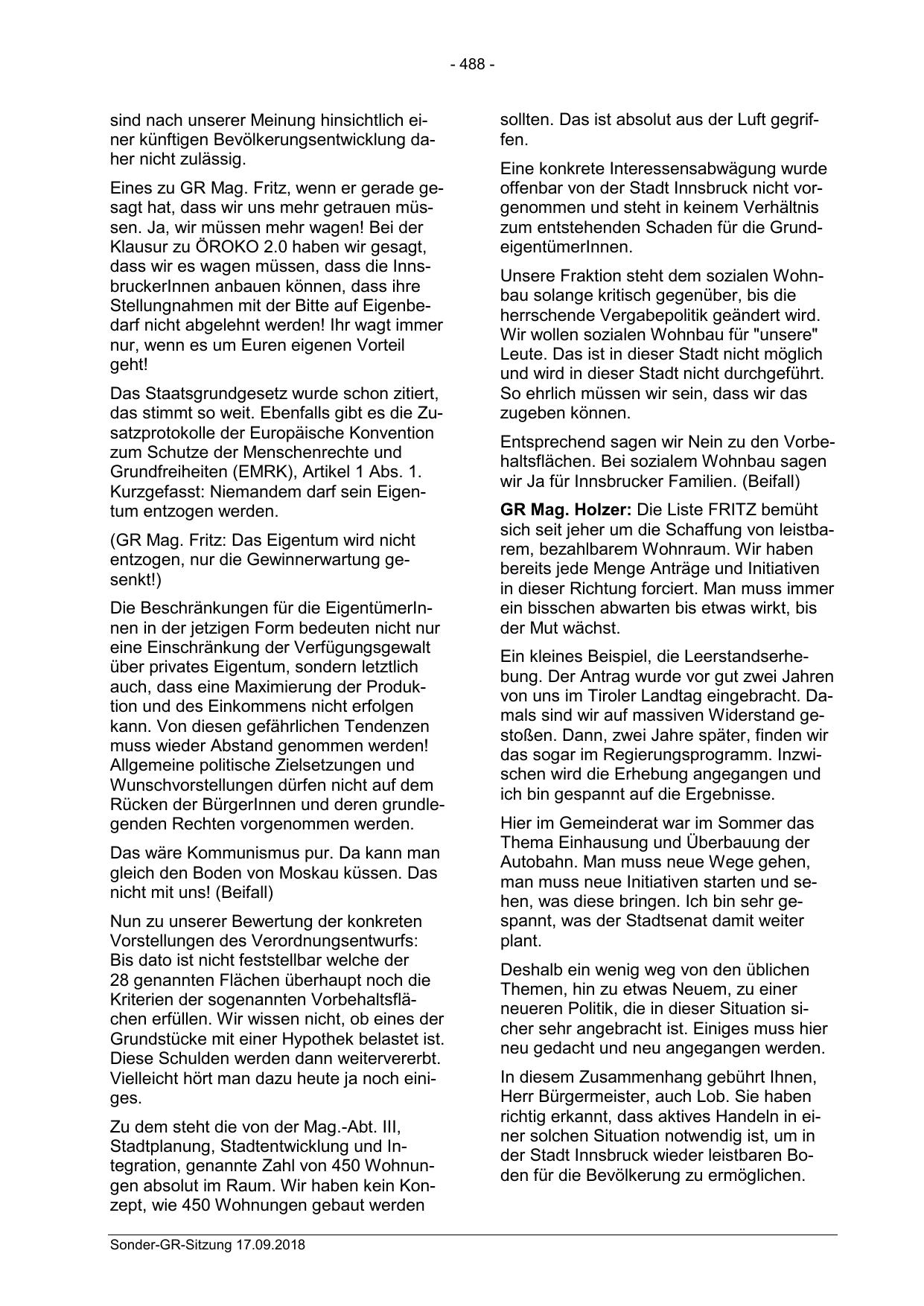 der Stadt Innsbruck wieder leistbaren Boden für die Bevölkerung zu ermöglichen.