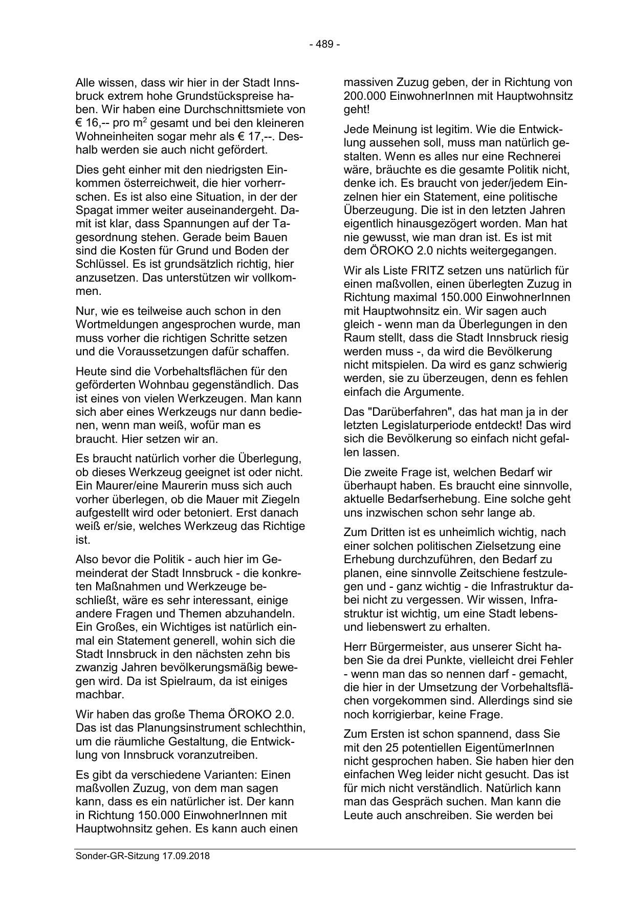 Sonder-GR-Sitzung 17.09.2018