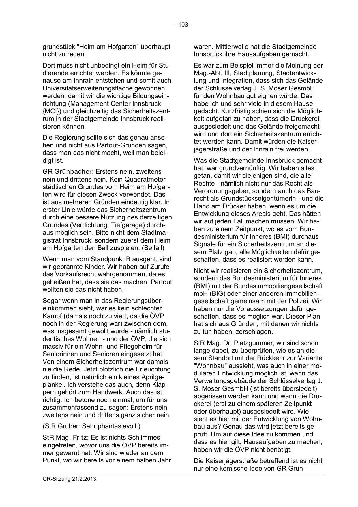 Grundes (Verdichtung, Tiefgarage) durchaus möglich sein. Bitte nicht dem Stadtmagistrat Innsbruck, sondern zuerst dem Heim