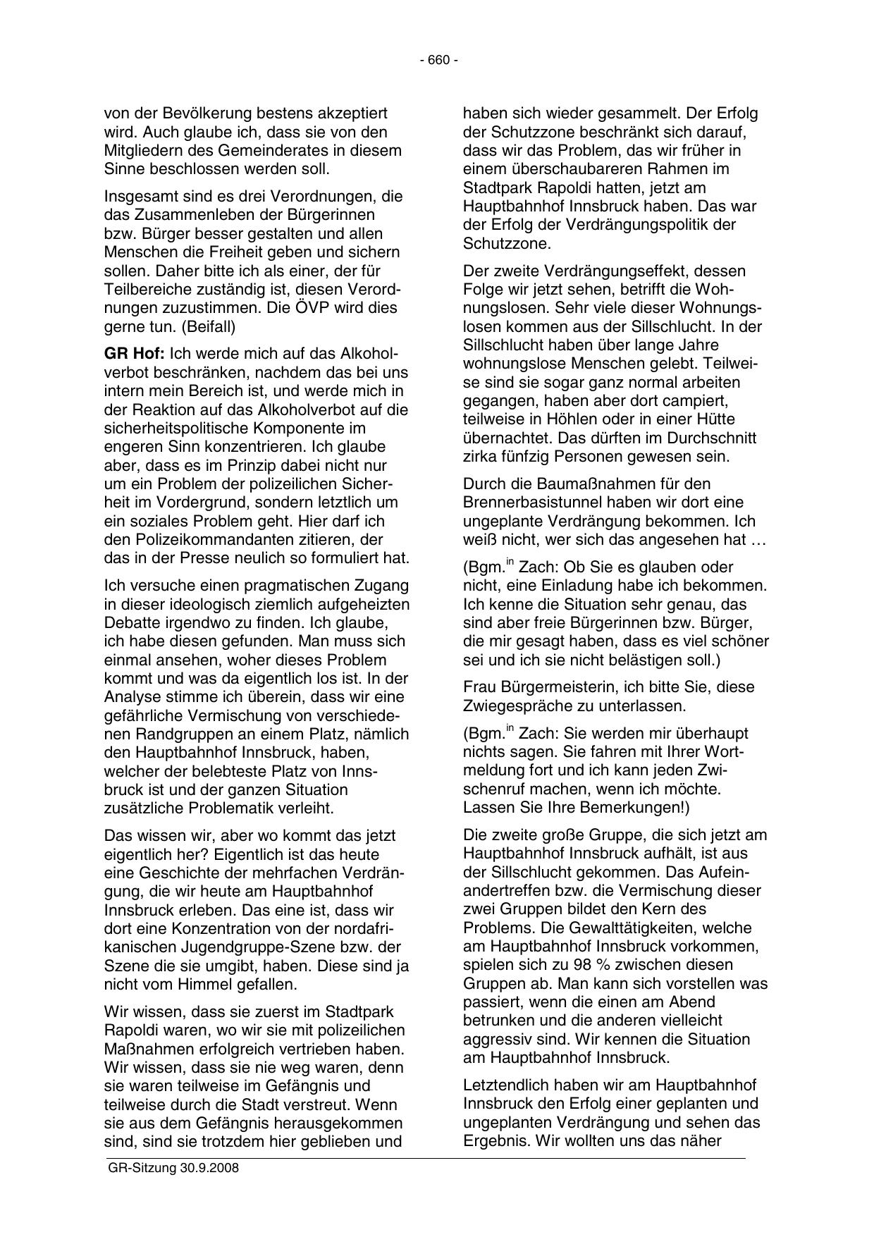GR Hof: Ich werde mich auf das Alkoholverbot beschränken, nachdem das bei uns