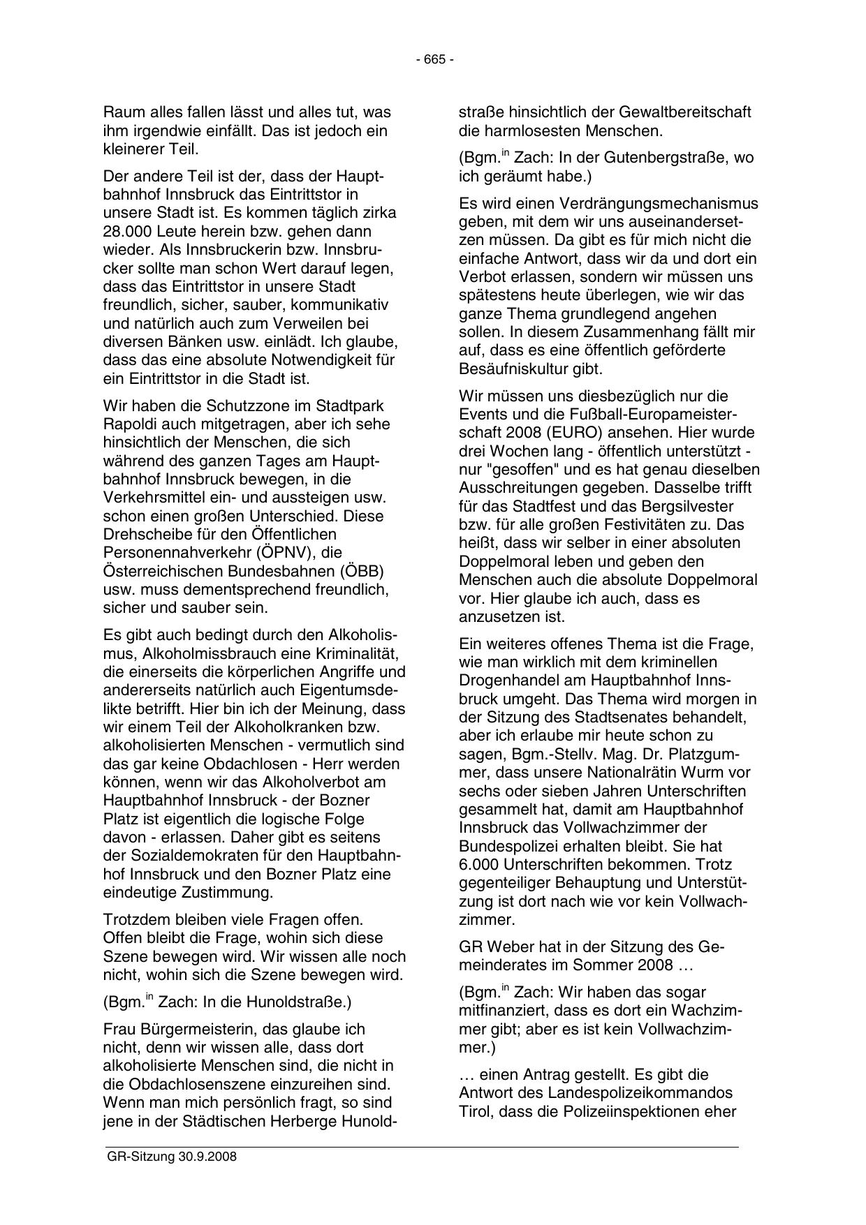 GR Weber hat in der Sitzung des Gemeinderates im Sommer 2008 …
