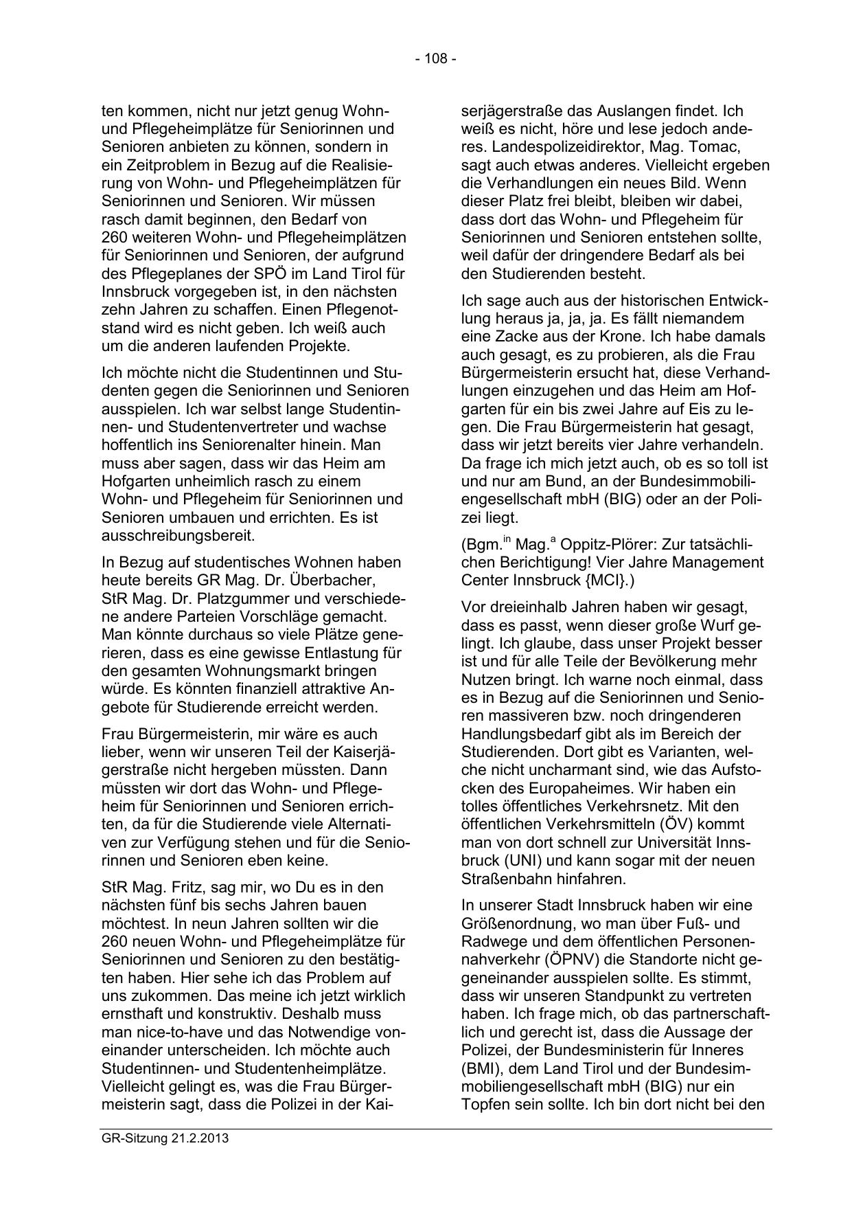 StR Mag. Dr. Platzgummer und verschiedene andere Parteien Vorschläge gemacht.