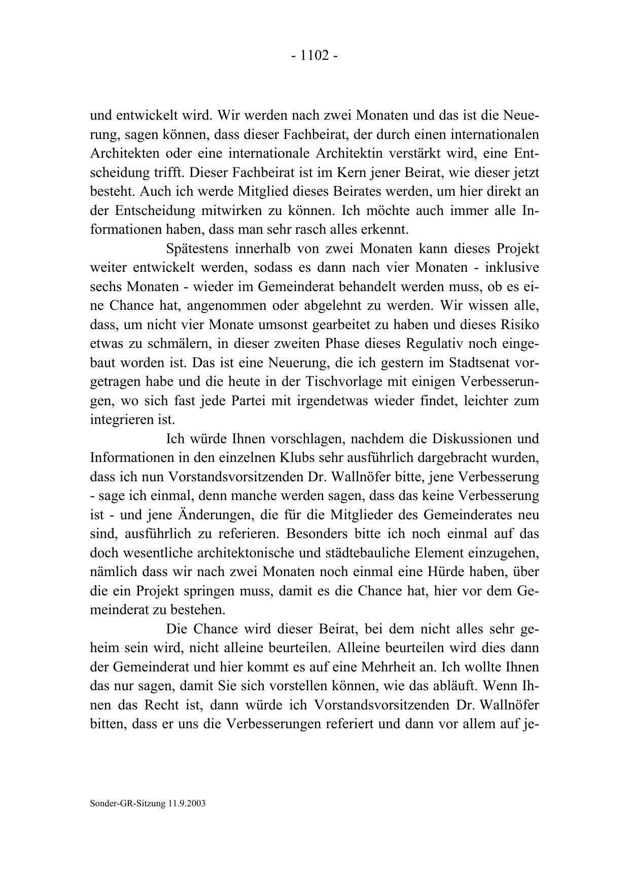 etwas zu schmälern, in dieser zweiten Phase dieses Regulativ noch eingebaut worden ist. Das ist eine Neuerung, die ich gestern im Stadtsenat vorgetragen habe und die heute in der Tischvorlage mit einigen Verbesserungen, wo sich fast jede Partei mit irgendetwas wieder findet, leichter zum