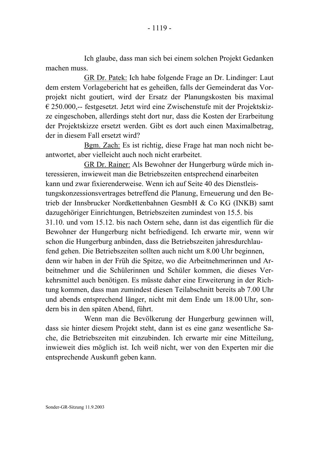 GR Dr. Rainer: Als Bewohner der Hungerburg würde mich interessieren, inwieweit man die Betriebszeiten entsprechend einarbeiten