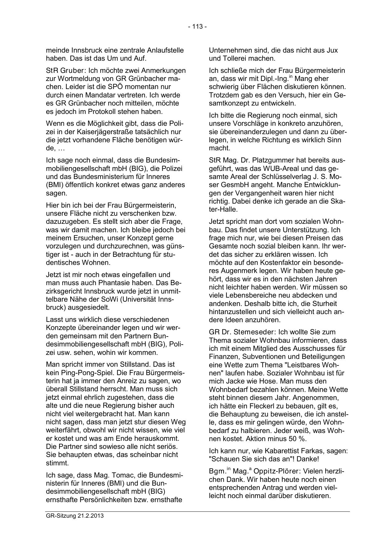 StR Mag. Dr. Platzgummer hat bereits ausgeführt, was das WUB-Areal und das gesamte Areal der Schlüsselverlag J. S. Moser GesmbH angeht. Manche Entwicklungen der Vergangenheit waren hier nicht