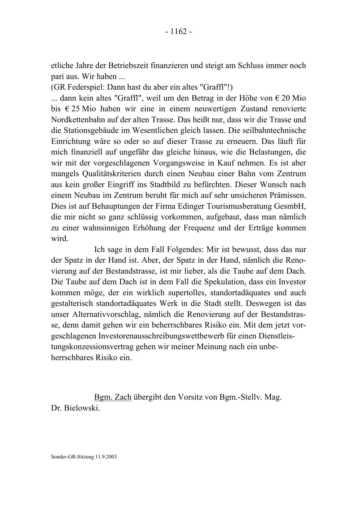 Bgm. Zach übergibt den Vorsitz von Bgm.-Stellv. Mag.