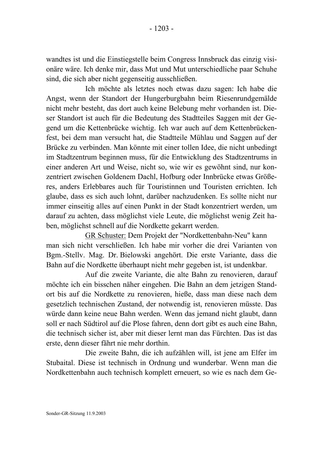 nicht mehr besteht, das dort auch keine Belebung mehr vorhanden ist. Dieser Standort ist auch für die Bedeutung des Stadtteiles Saggen mit der Gegend um die Kettenbrücke wichtig. Ich war auch auf dem Kettenbrückenfest, bei dem man versucht hat, die Stadtteile Mühlau und Saggen auf der