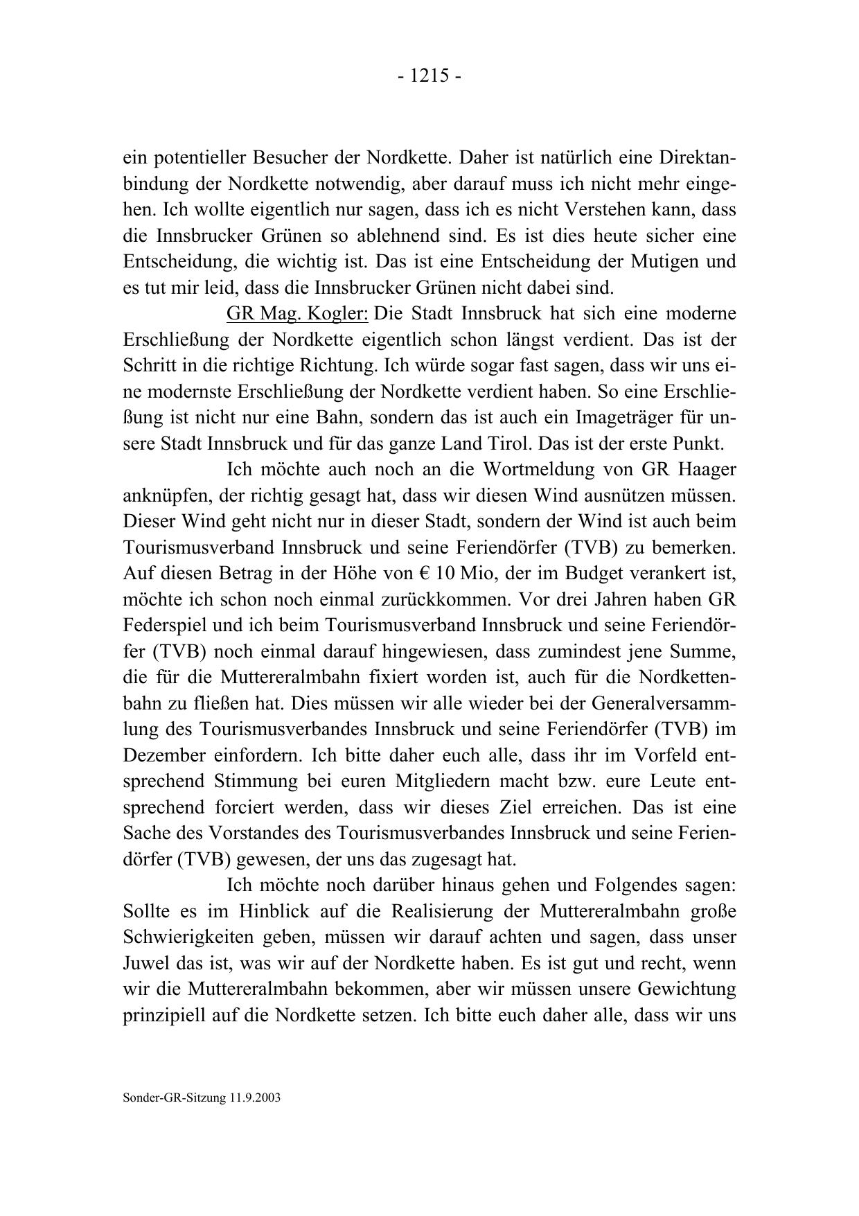 Sonder-GR-Sitzung 11.9.2003