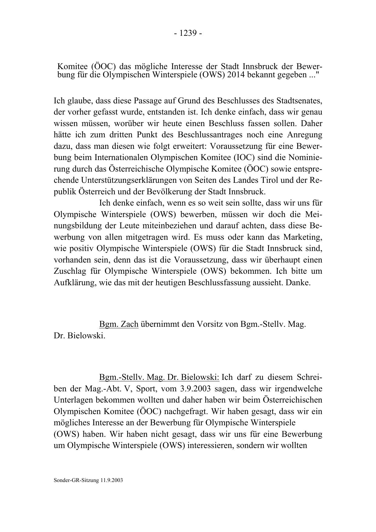 dazu, dass man diesen wie folgt erweitert: Voraussetzung für eine Bewerbung beim Internationalen Olympischen Komitee (IOC) sind die Nominierung durch das Österreichische Olympische Komitee (ÖOC) sowie entsprechende Unterstützungserklärungen von Seiten des Landes Tirol und der Republik Österreich und der Bevölkerung der Stadt Innsbruck.