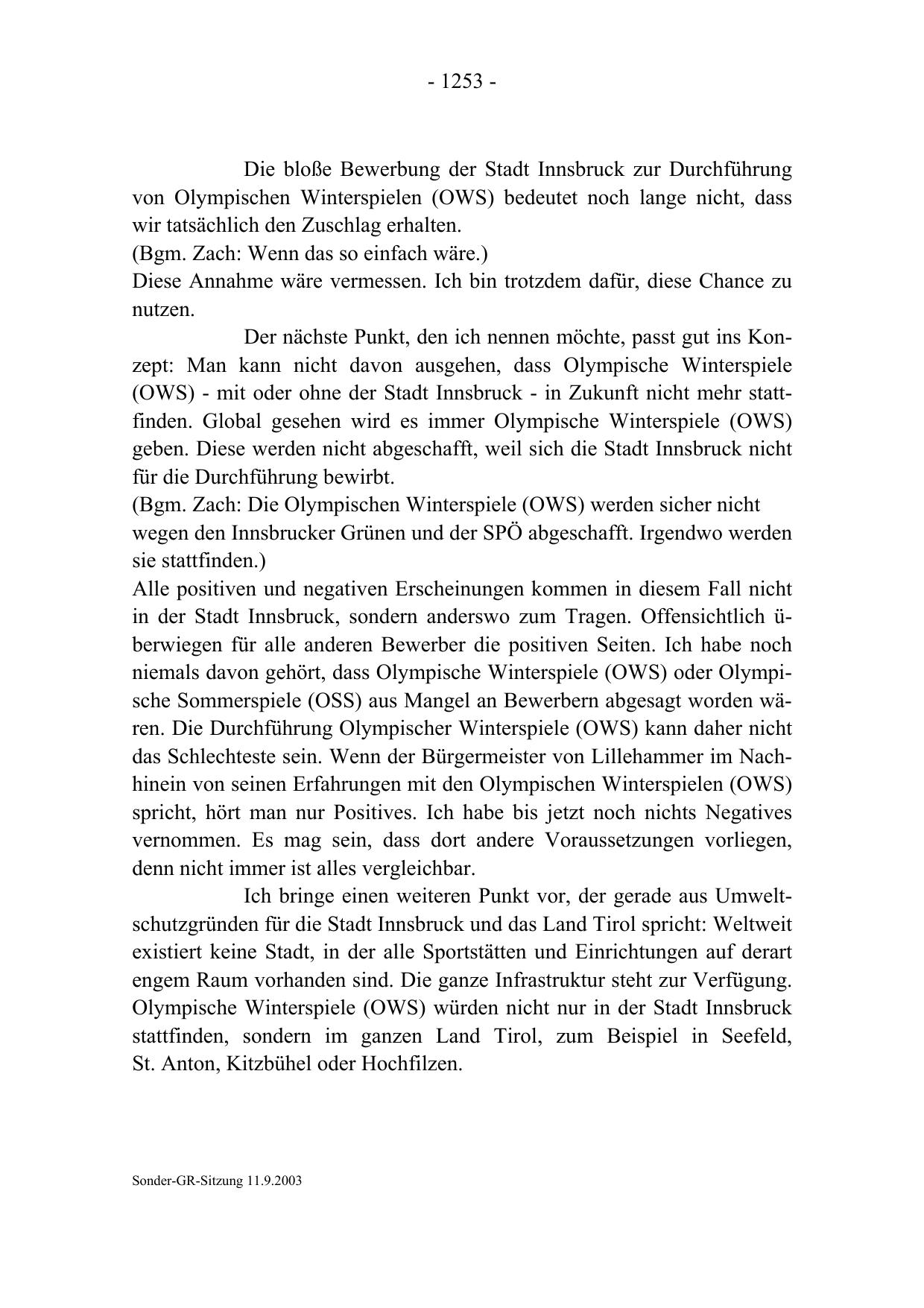 (Bgm. Zach: Die Olympischen Winterspiele (OWS) werden sicher nicht