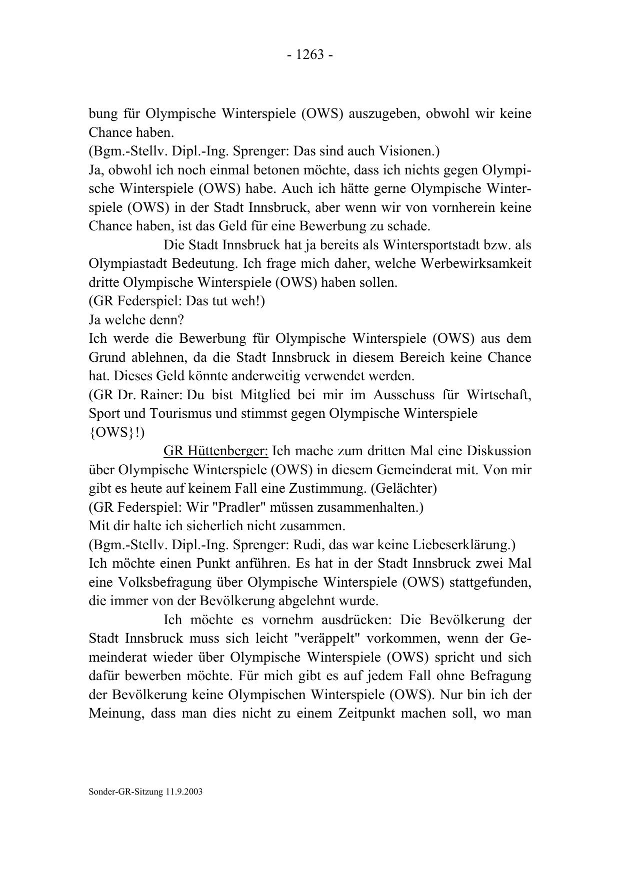 über Olympische Winterspiele (OWS) in diesem Gemeinderat mit. Von mir