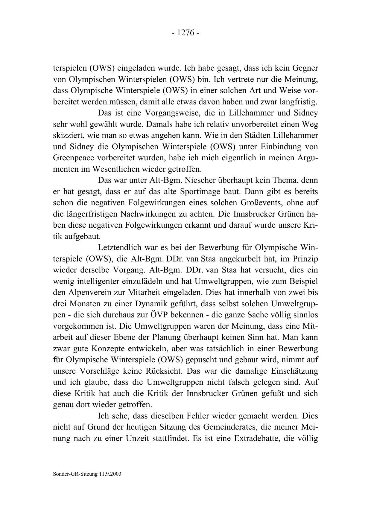 Letztendlich war es bei der Bewerbung für Olympische Winterspiele (OWS), die Alt-Bgm. DDr. van Staa angekurbelt hat, im Prinzip
