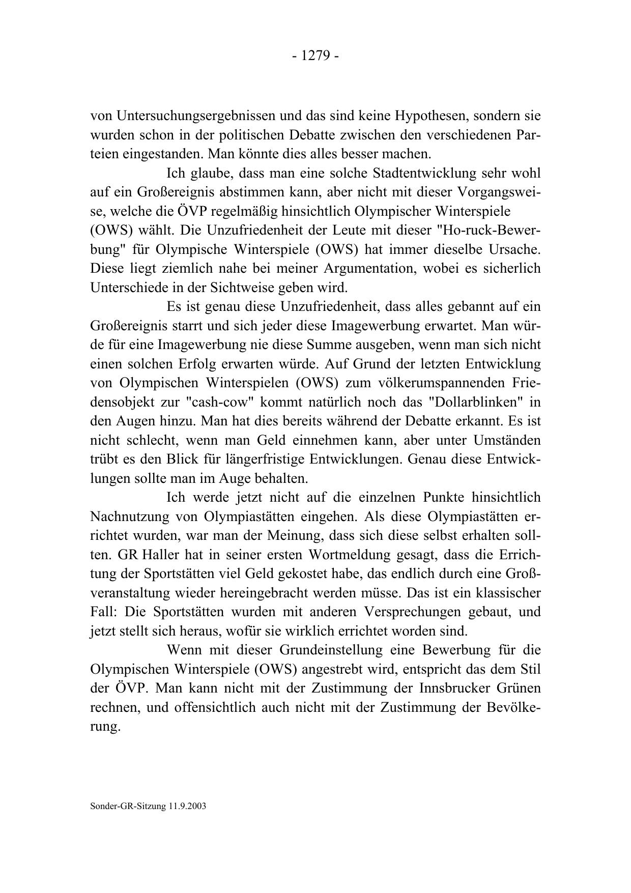 Nachnutzung von Olympiastätten eingehen. Als diese Olympiastätten errichtet wurden, war man der Meinung, dass sich diese selbst erhalten sollten. GR Haller hat in seiner ersten Wortmeldung gesagt, dass die Errichtung der Sportstätten viel Geld gekostet habe, das endlich durch eine Großveranstaltung wieder hereingebracht werden müsse. Das ist ein klassischer