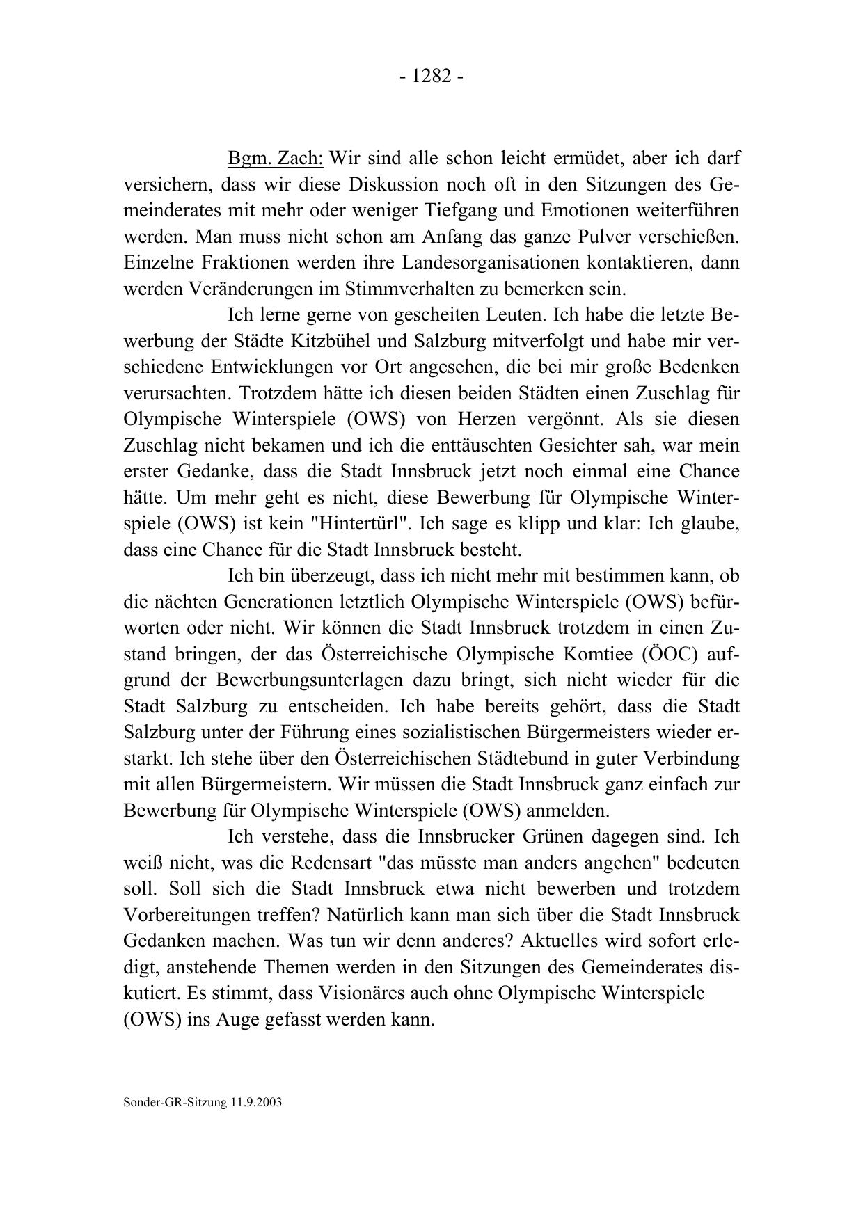 die nächten Generationen letztlich Olympische Winterspiele (OWS) befürworten oder nicht. Wir können die Stadt Innsbruck trotzdem in einen Zustand bringen, der das Österreichische Olympische Komtiee (ÖOC) aufgrund der Bewerbungsunterlagen dazu bringt, sich nicht wieder für die