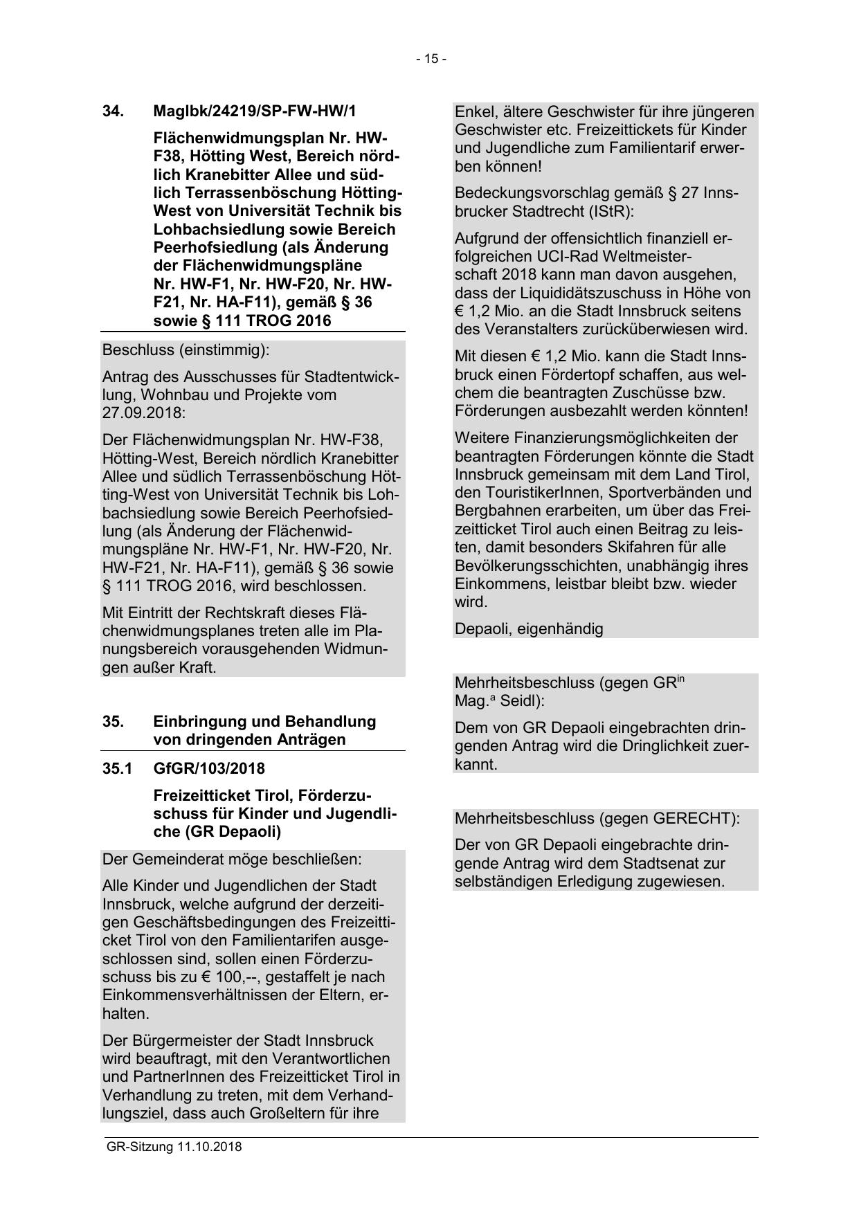 Bedeckungsvorschlag gemäß § 27 Innsbrucker Stadtrecht (IStR):