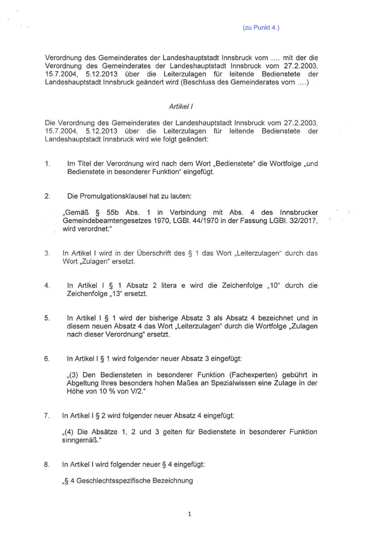 Landeshauptstadt Innsbruck geändert wird (Beschluss des Gemeinderates vom ... .)