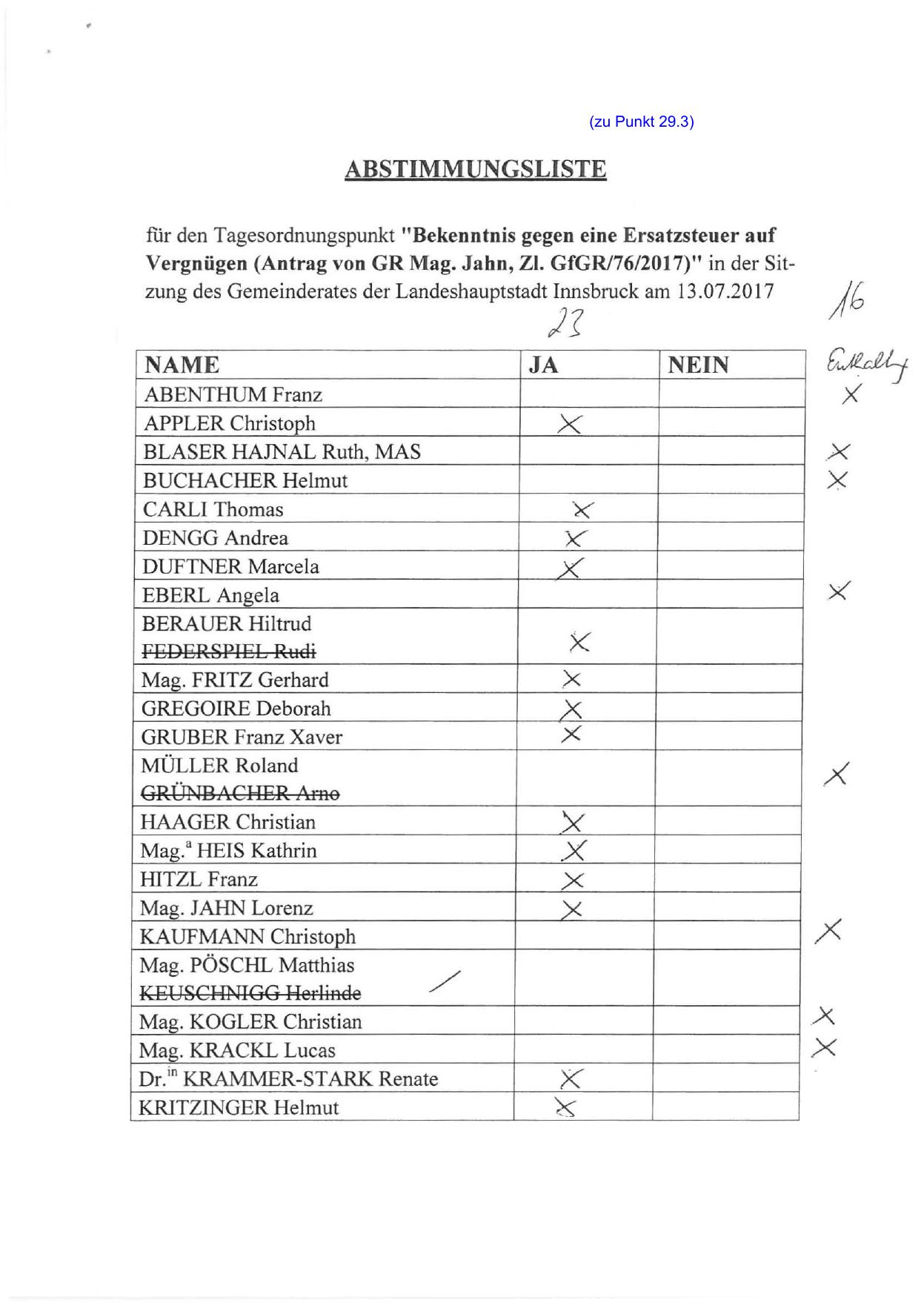 Vergnügen (Antrag von GR Mag. Jahn, ZI. GfGR/76/2017)" in der Sitzung des Gemeinderates der Landeshauptstadt Innsbruck am 13 .07.2017