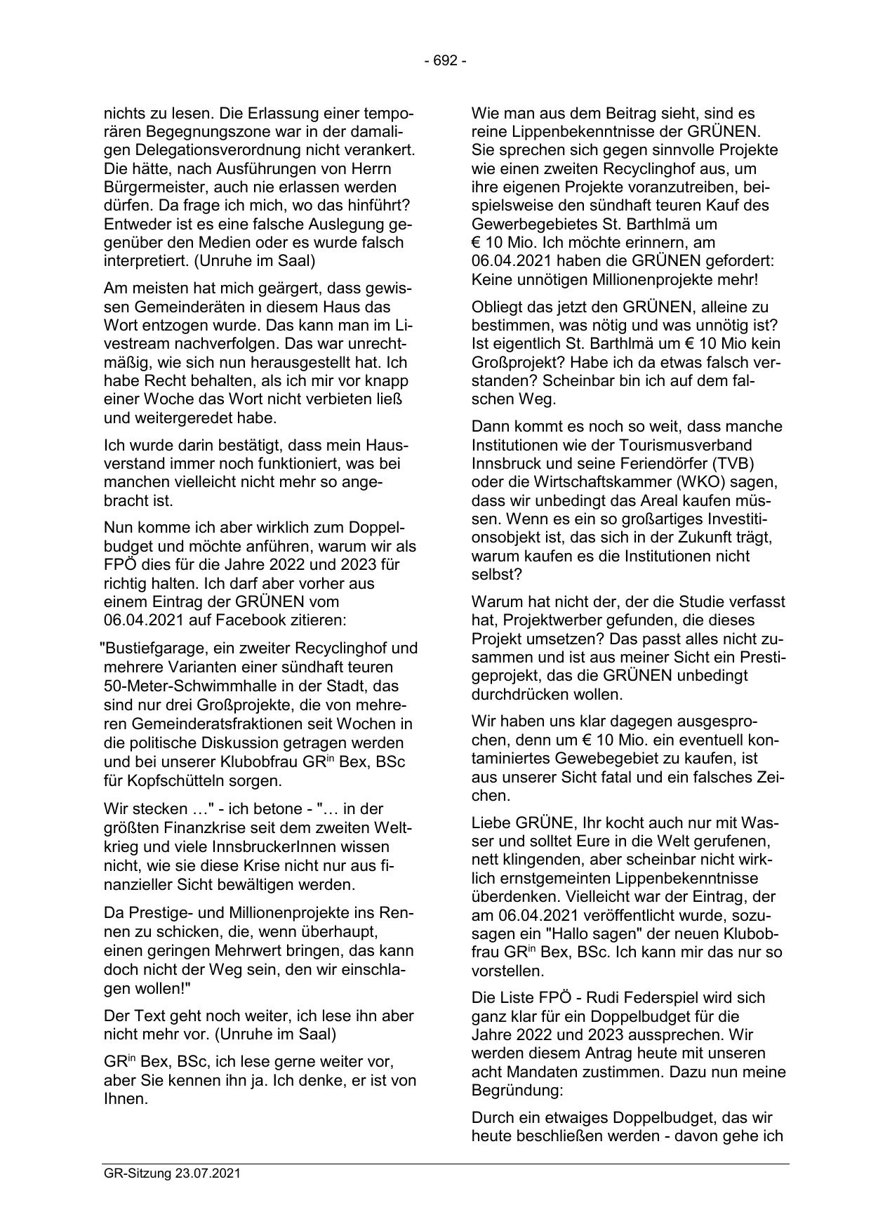 am 06.04.2021 veröffentlicht wurde, sozusagen ein "Hallo sagen" der neuen Klubobfrau GRin Bex, BSc. Ich kann mir das nur so